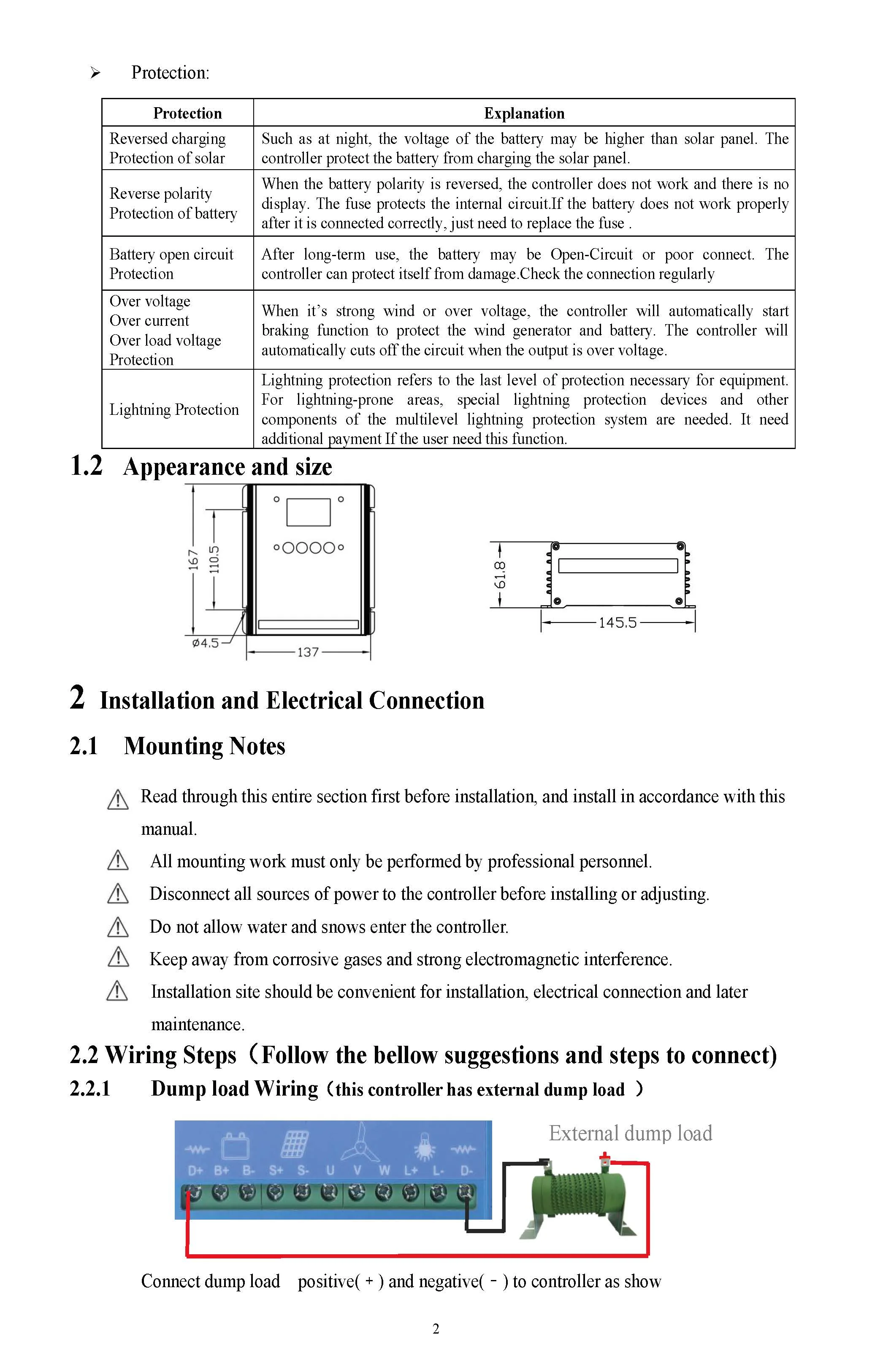 Ø PWM dump load of wind, external dump-load resistance, intelligent disconnection of Solar charging.