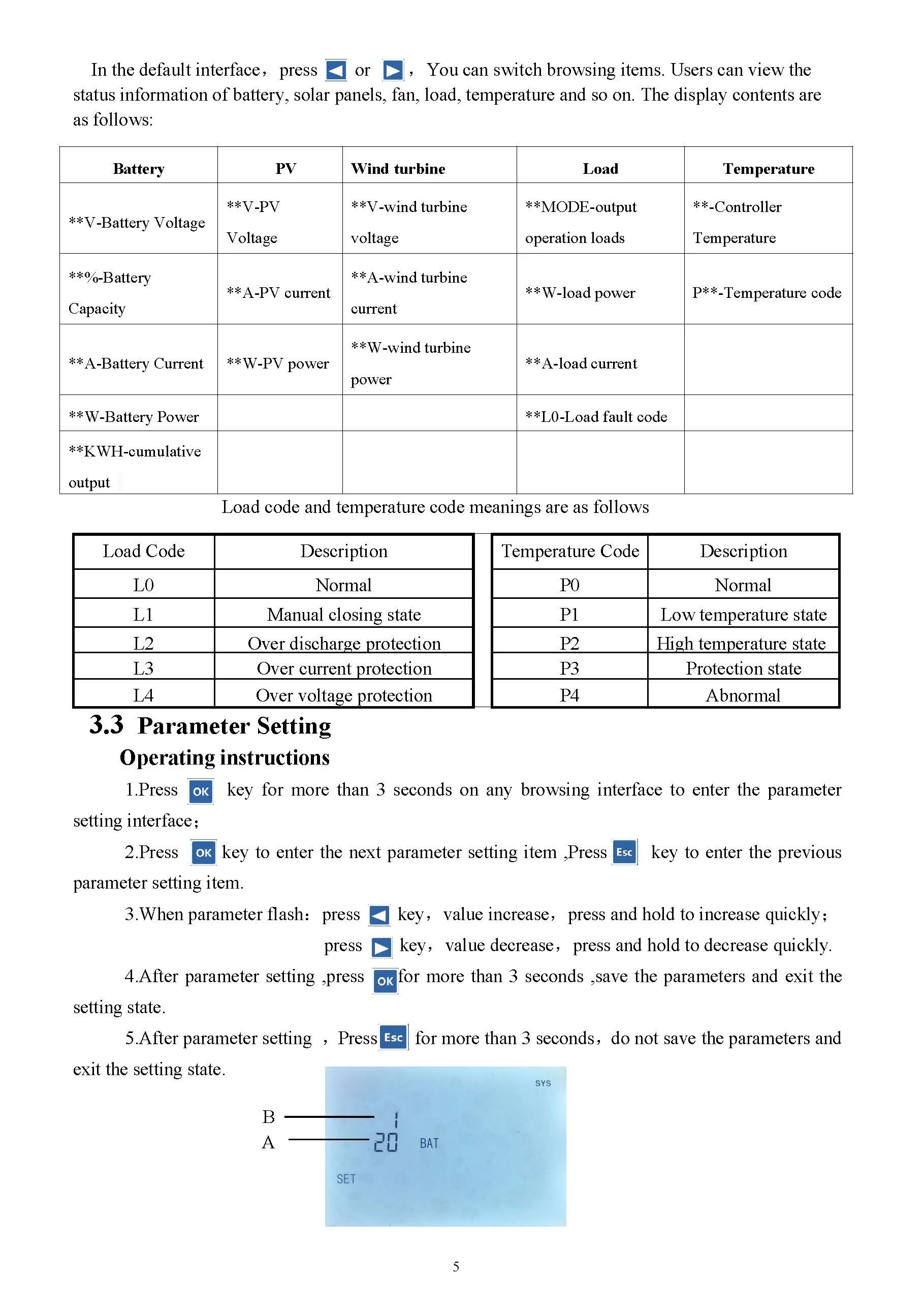 Ø LCD displays parameters such as voltage and current of wind, solar and load .Some parameters can be set by users.