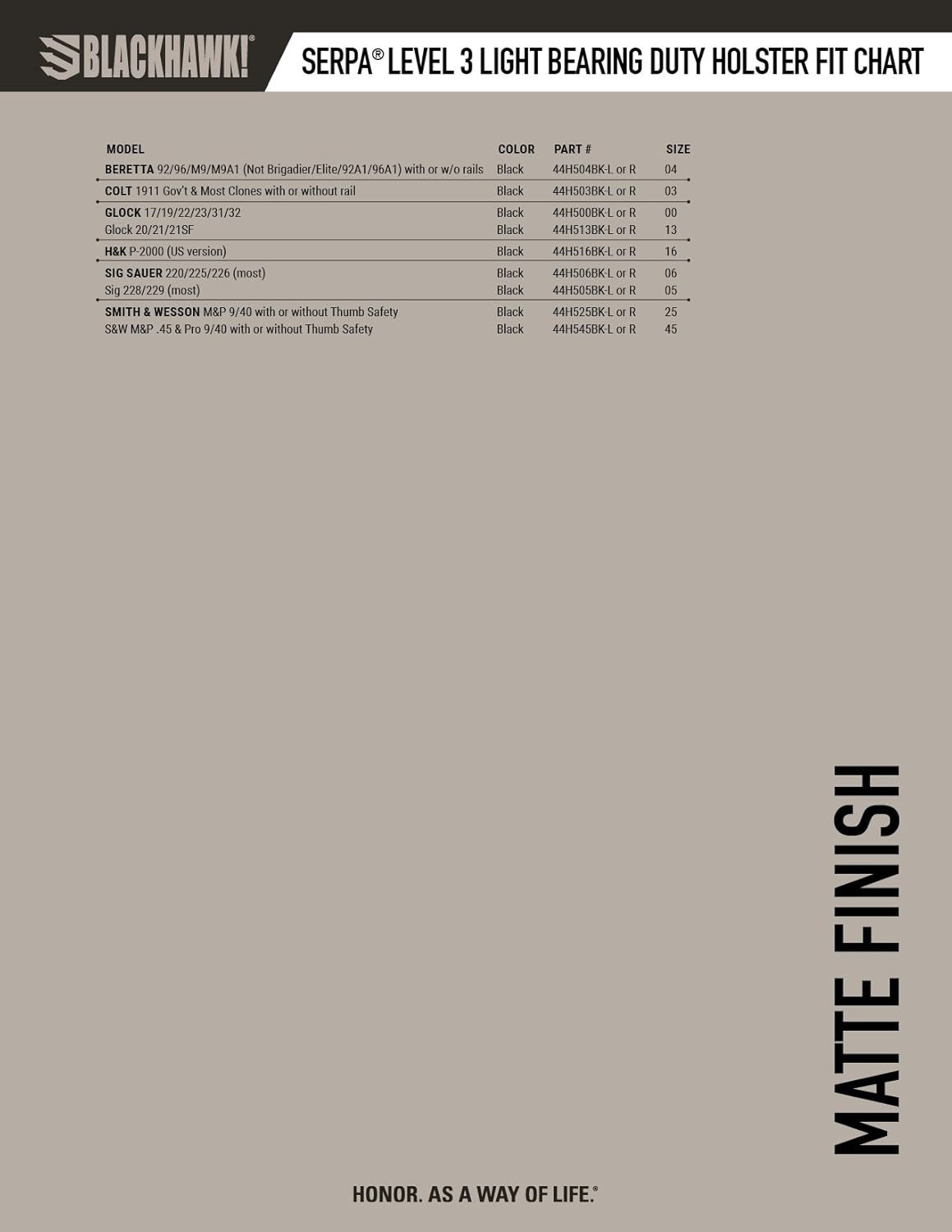 - Level 3 Retention: SERPA Auto Lock™ system provides instant security with passive retention and an audible re-holster click