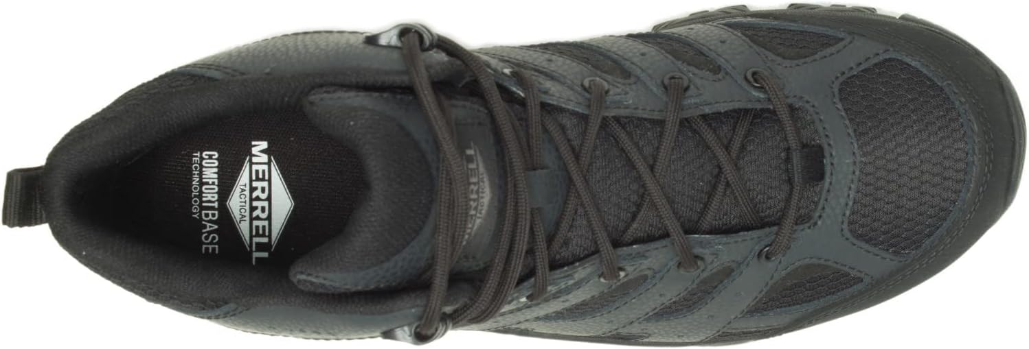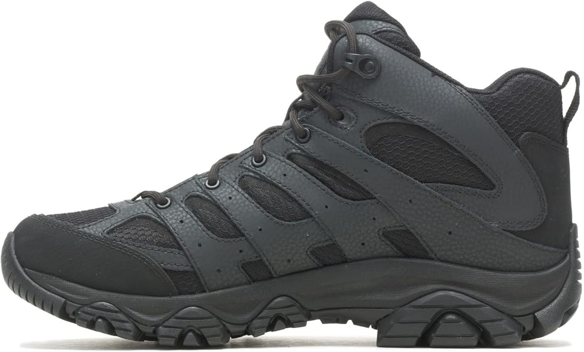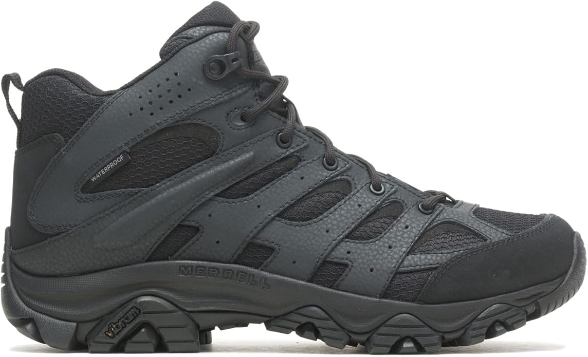 Engineered for rugged durability and all-day comfort, the Merrell Men's Moab 3 Tactical Mid Waterproof Boots take the legendary Moab hiking boot and optimize it for tactical, work, and outdoor performance. Whether you're facing harsh terrain, extreme weather, or long shifts, these boots are built to keep your feet dry, comfortable, and supported. Constructed with a waterproof coated leather and mesh upper, these boots feature a waterproof membrane that seals out water while allowing moisture to escape, keeping your feet dry and comfortable. A bellows tongue prevents debris from entering, while the abrasion-resistant rubber heel and toe cap enhance durability in high-wear areas. Designed for superior comfort and shock absorption, the COMFORTBASE™ removable contoured footbed and Super Rebound Compound midsole ensure cushioning and stability throughout long hours of wear. The Vibram® TC5+ outsole, formulated exclusively for Merrell, delivers exceptional traction and grip across a variety of terrains, making these boots ideal for tactical professionals, industrial workers, and outdoor adventurers alike. The Merrell Men's Moab 3 Tactical Mid Waterproof Boots combine durability, protection, and comfort to handle any terrain and any weather. Whether you’re working long shifts, navigating challenging landscapes, or tackling outdoor adventures, these boots provide all-day support and stability. With a waterproof coated leather and mesh upper, these boots seal out moisture while allowing ventilation, ensuring dry and breathable comfort. The bellows tongue prevents debris from entering, while the abrasion-resistant rubber heel and toe cap add durability in high-wear areas. For maximum cushioning and support, the COMFORTBASE™ removable contoured footbed and Super Rebound Compound midsole provide shock absorption and stability, reducing fatigue and promoting smooth transitions with every step. The Merrell Air Cushion in the heel absorbs impact, while the Vibram® TC5+ outsole offers exceptional traction, making these boots perfect for multi-terrain and tactical applications.