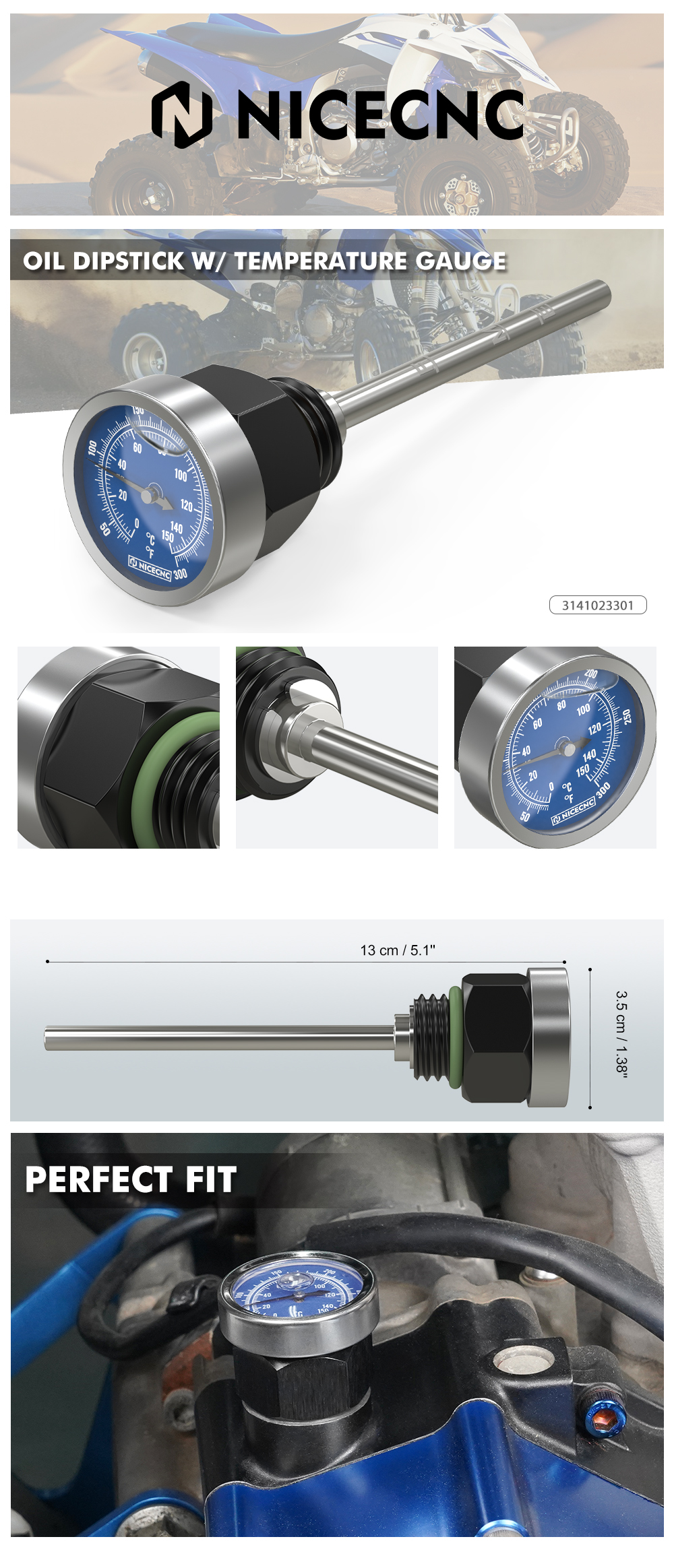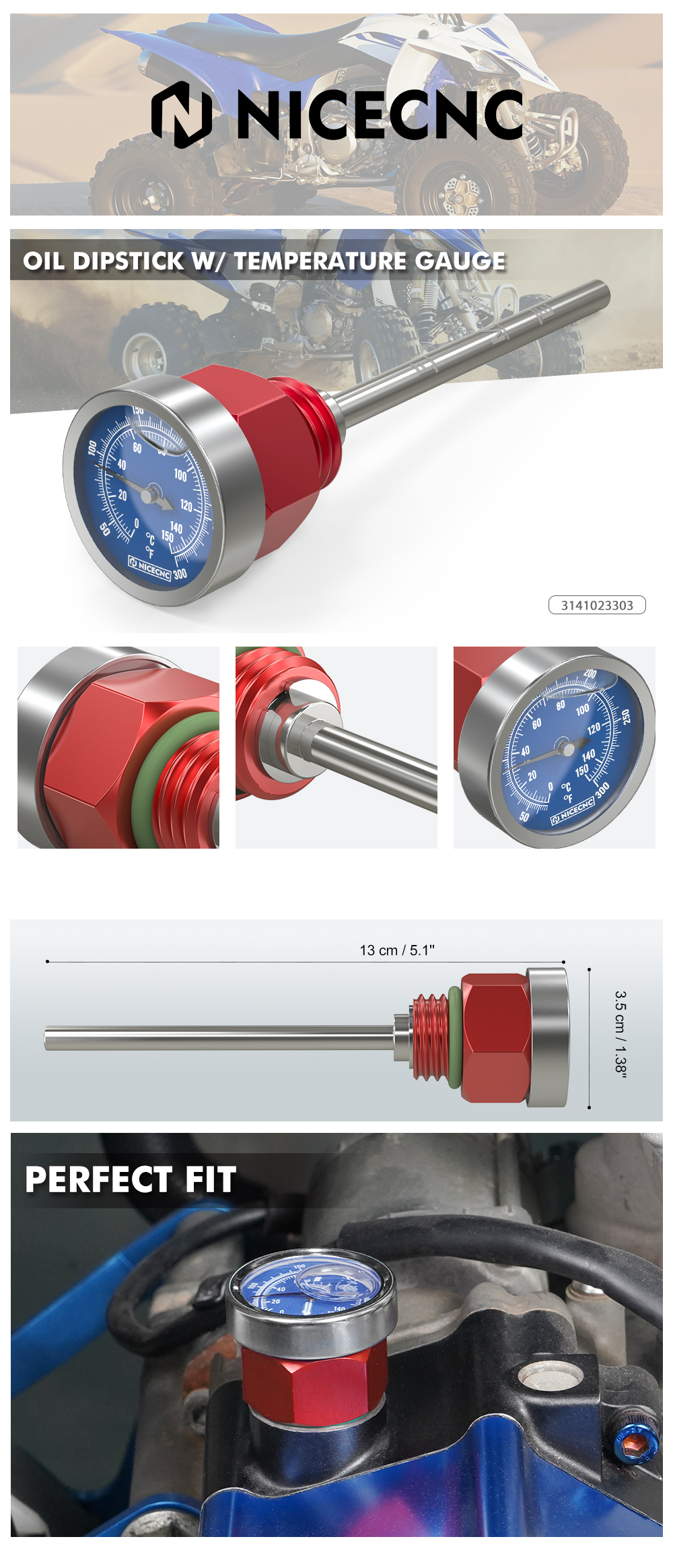 【Wide Temperature gauge of 0~150℃】Add a temperature gauge with a clear readout so that you can monitor the oil temperature easily to prevent overheat of your engine. Let you know it’s time to pull over.