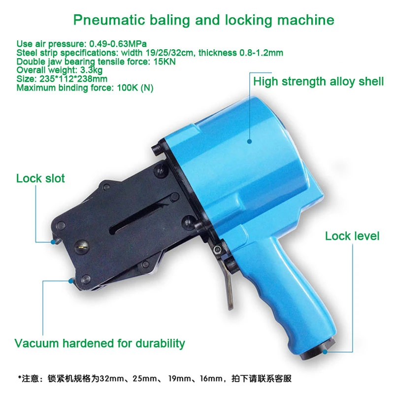 Maximum binding force: ≧9K(N) Pneumatic baling and locking machine: