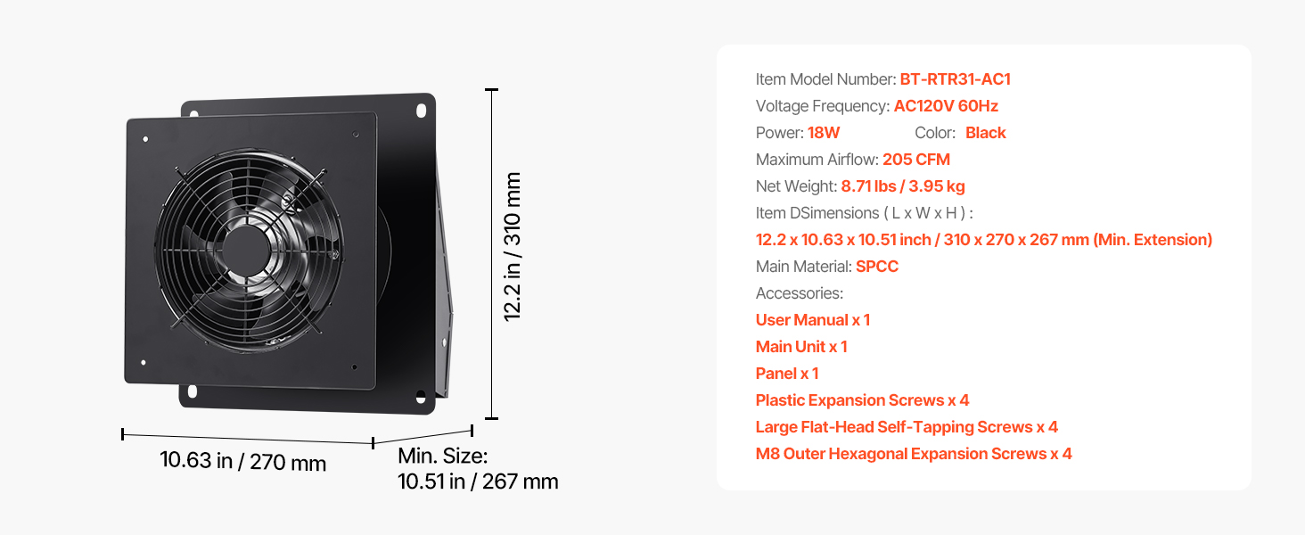 Quick Installation: The indoor ventilation fan comes with a full set of accessories, allowing for quick setup upon arrival. The fan’s panel features pre-drilled holes, enabling you to mark the wall for drilling and installation based on hole diameter