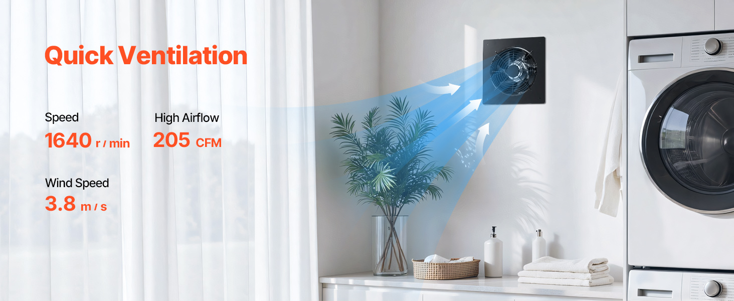 Rapid Ventilation: With a high speed of 1640 r/min and powerful performance, this wall vent fan delivers a maximum airflow of up to 205 CFM, meeting the ventilation needs of spaces like the living room, bedroom, and laundry room