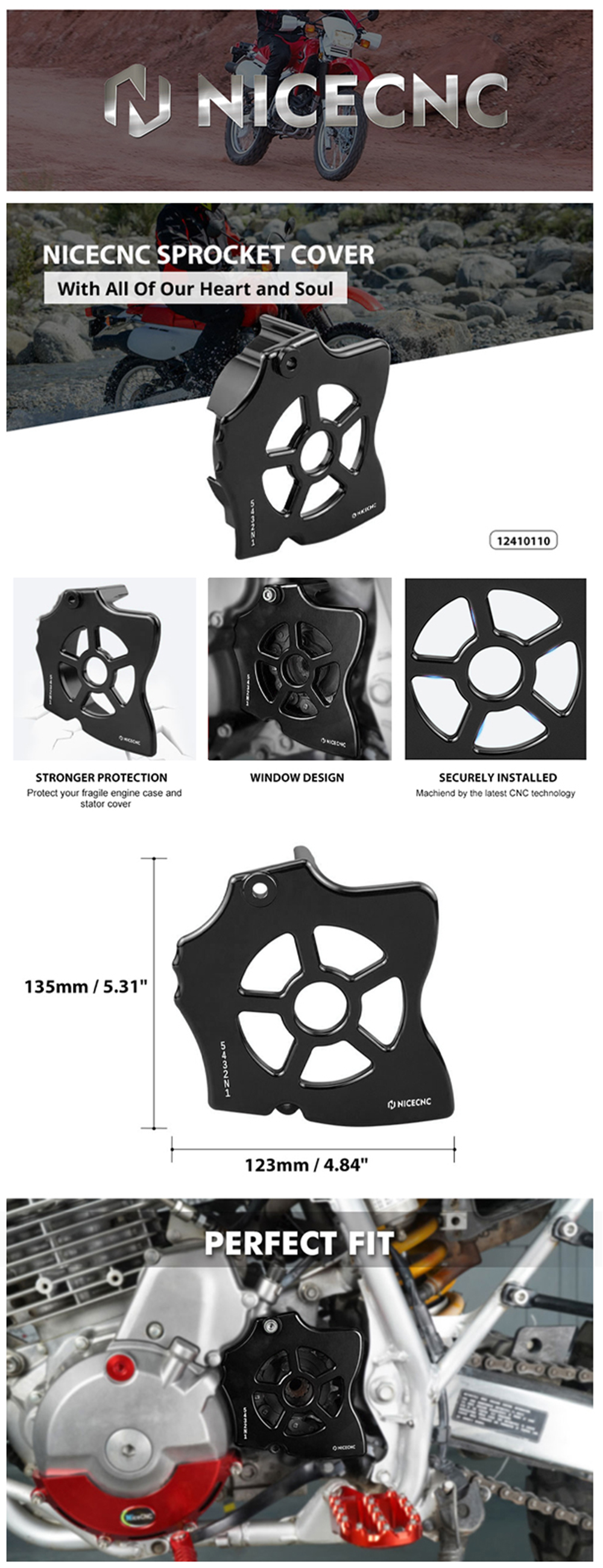 【Carved-out Window】Provides a window to view your front sprocket condition and access to clean/remove mud and debris unlike the stock cover.