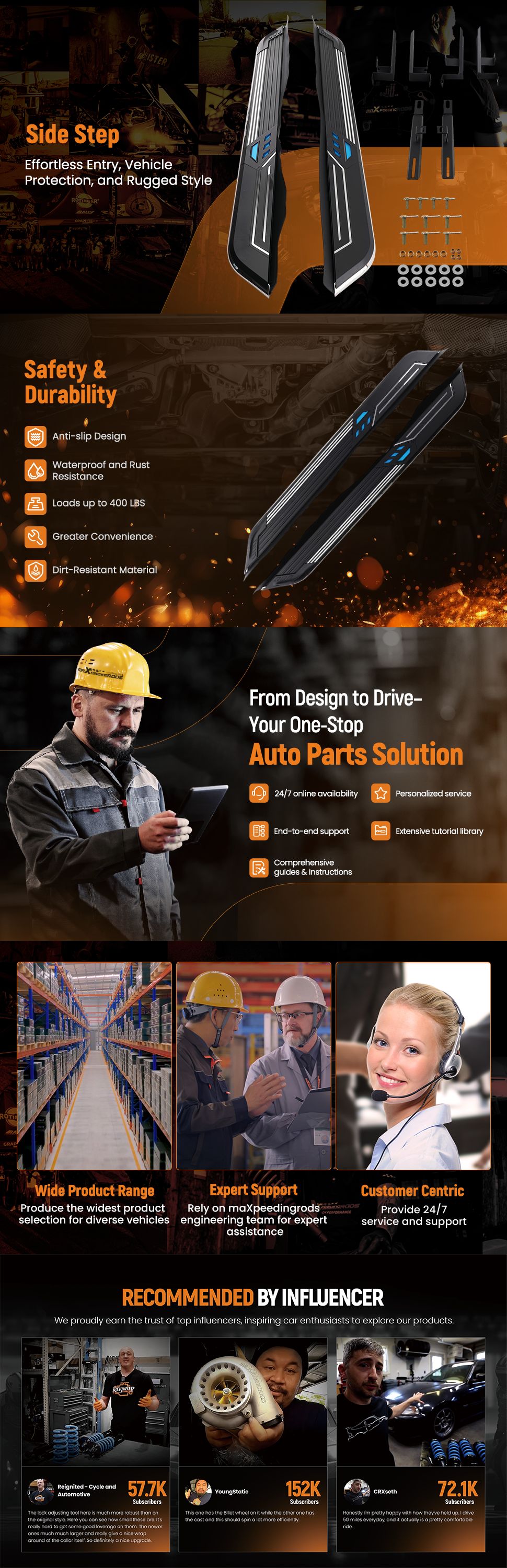 No more climbing struggles! Designed for effortless access, especially for kids, elderly passengers, or lifted trucks. Adds an extra layer of side protection against road debris and minor impacts.