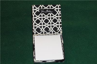 You are viewing a VERA BRADLEY Stickie note box holder. Comes in Night & Day - retired Summer 2010. Black/white baroque floral pattern, fold-over container and white stickie paper pad inside.