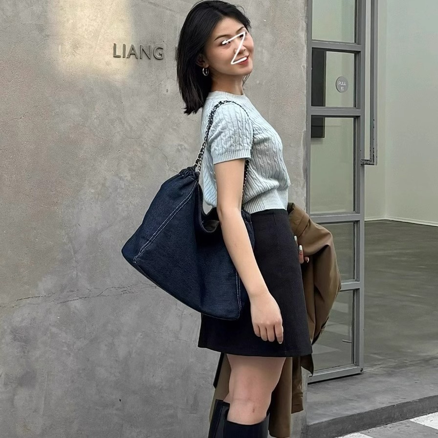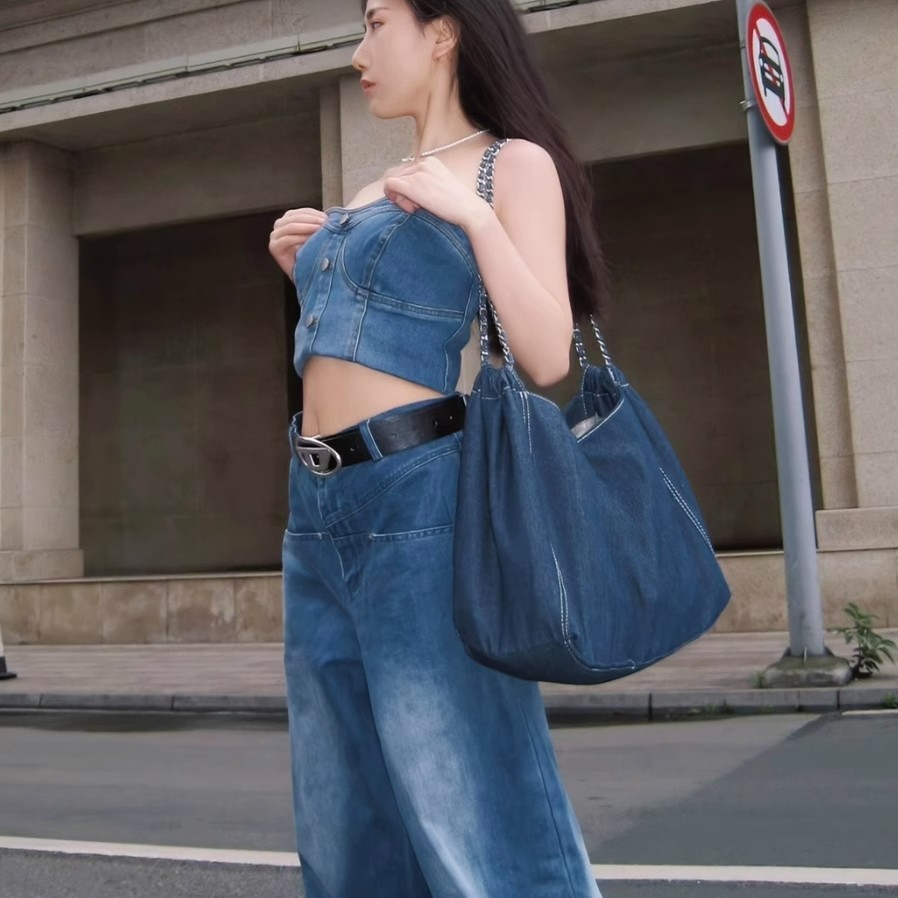 This women's shoulder bag is made of high-quality denim jean fabric, which is durable and sturdy for daily use.