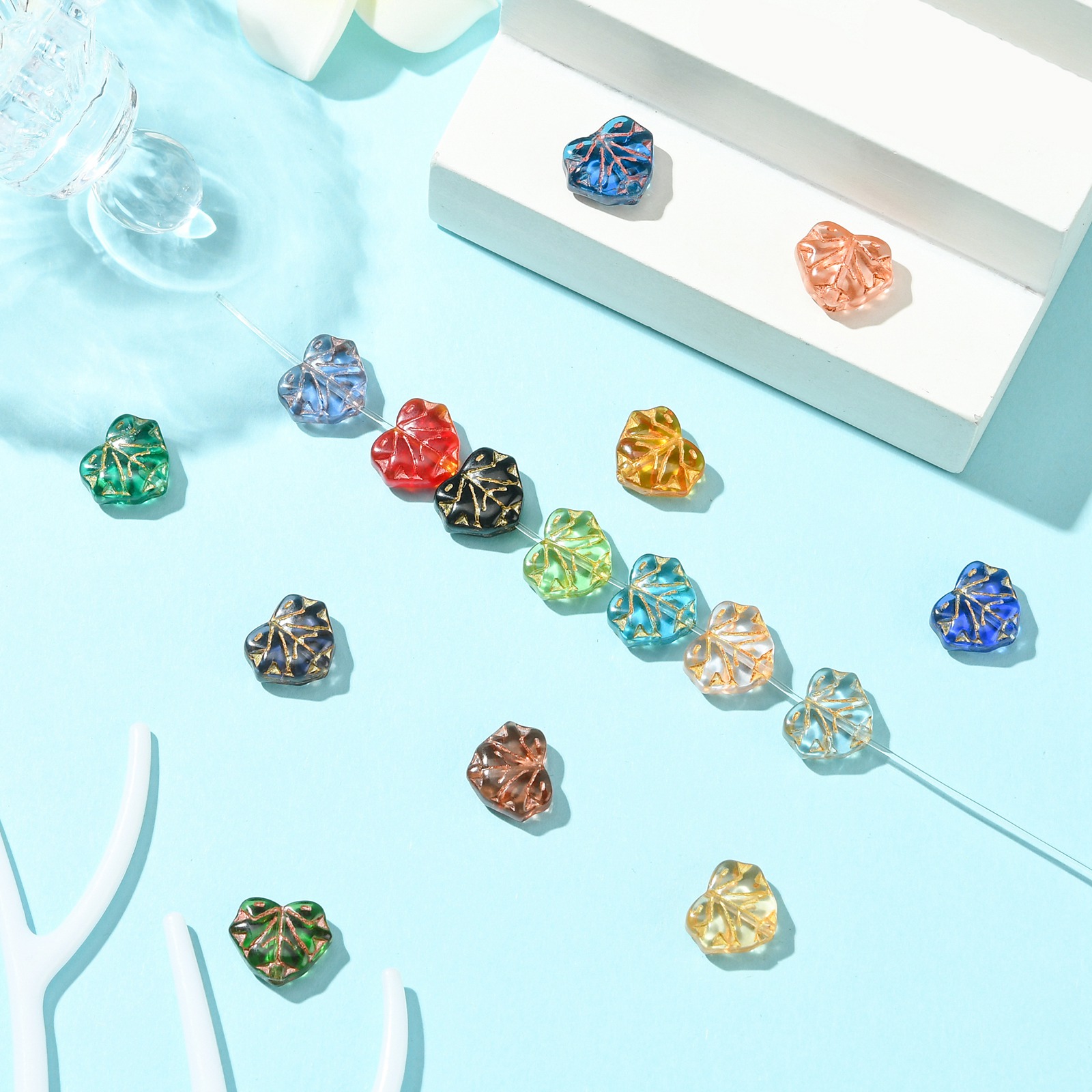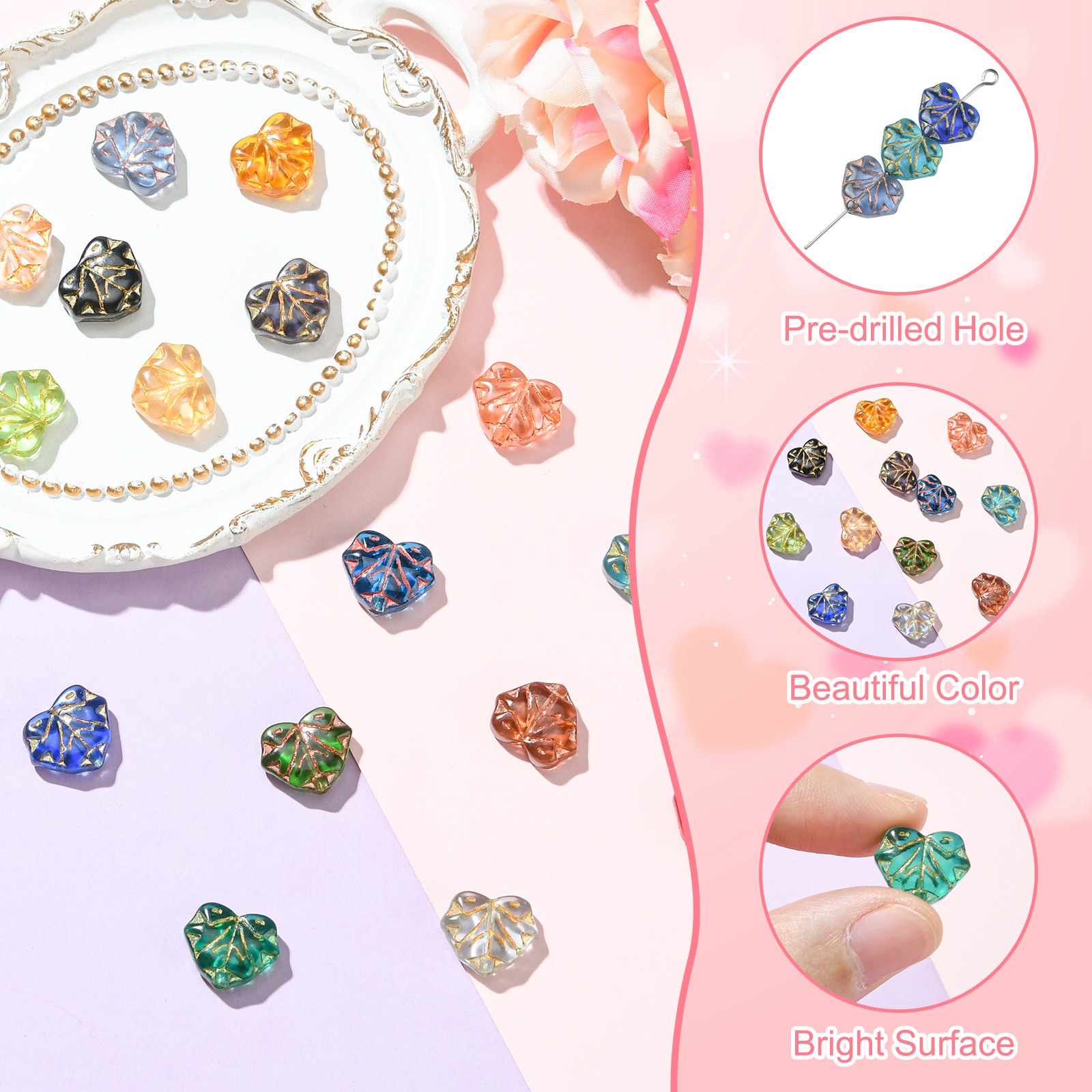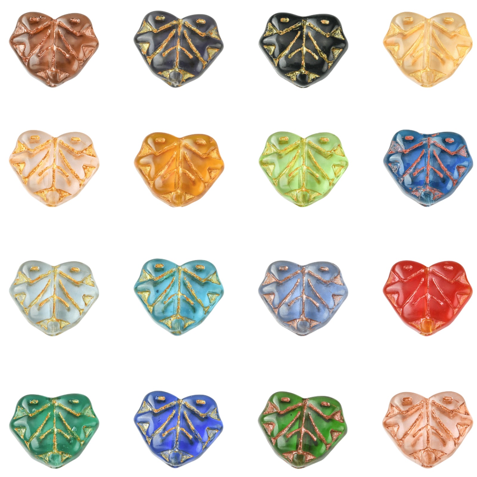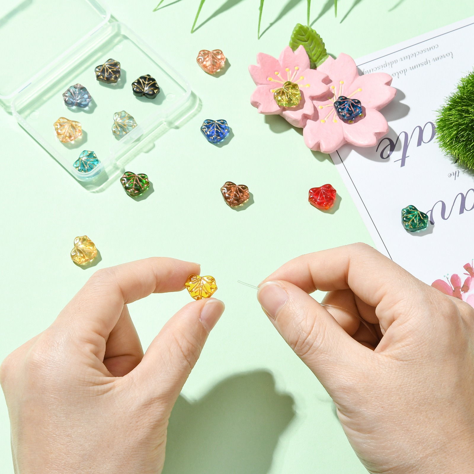 Leaf: 11x13x5.5mm, Hole: 1.2mm, 14 colors, 1pc/color, 14pcs;
