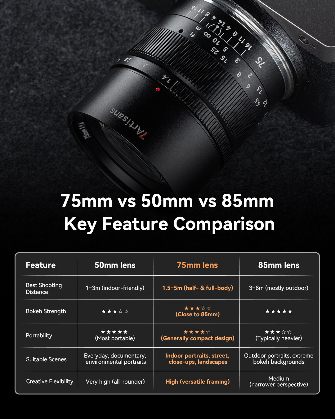 7artisans 75mm F1.4 Full Frame Portrait Manual Lens For Sony E Nikon Z Canon R L Mount
