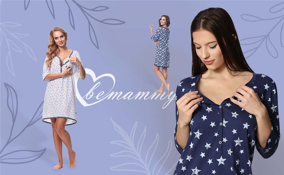 Baumwollnachthemd für schwangere und stillende Frauen.