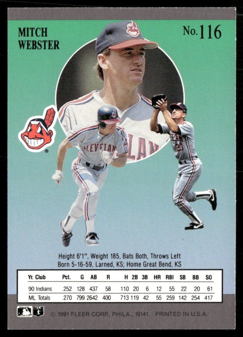 | 1991 ULTRA MITCH WEBSTER CLEVELAND INDIANS #116 |