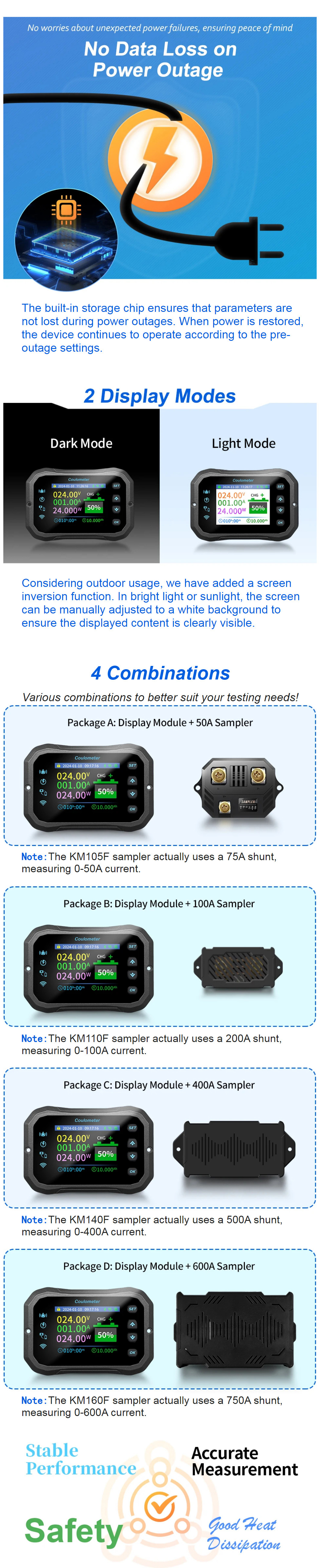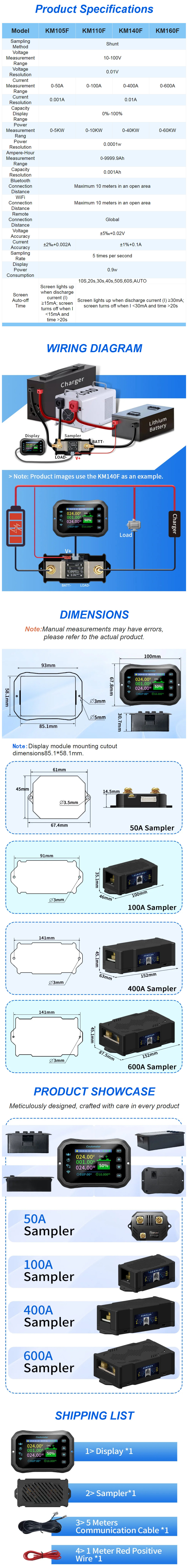 | Title: | KM105F KM110F KM140F KM160F KM-F Series Coulomb Meter WiFi Remote RV & EV Home Energy Electric Car Storage Battery Capacity Bidirectional Current Tester | ||
