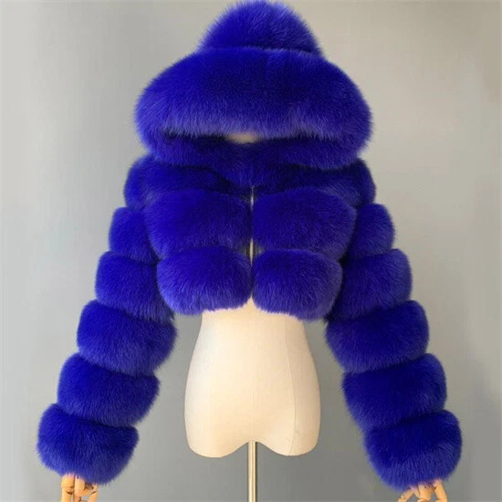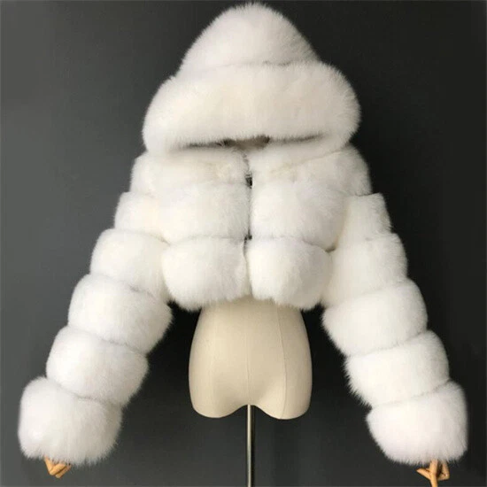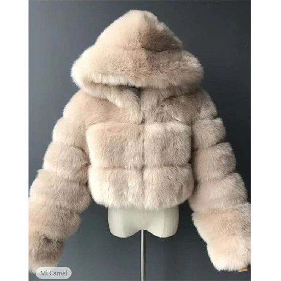 Women's Faux Fur Crew Neck Shaggy Jacket Winter Cropped Top Coat Warm Outwear
