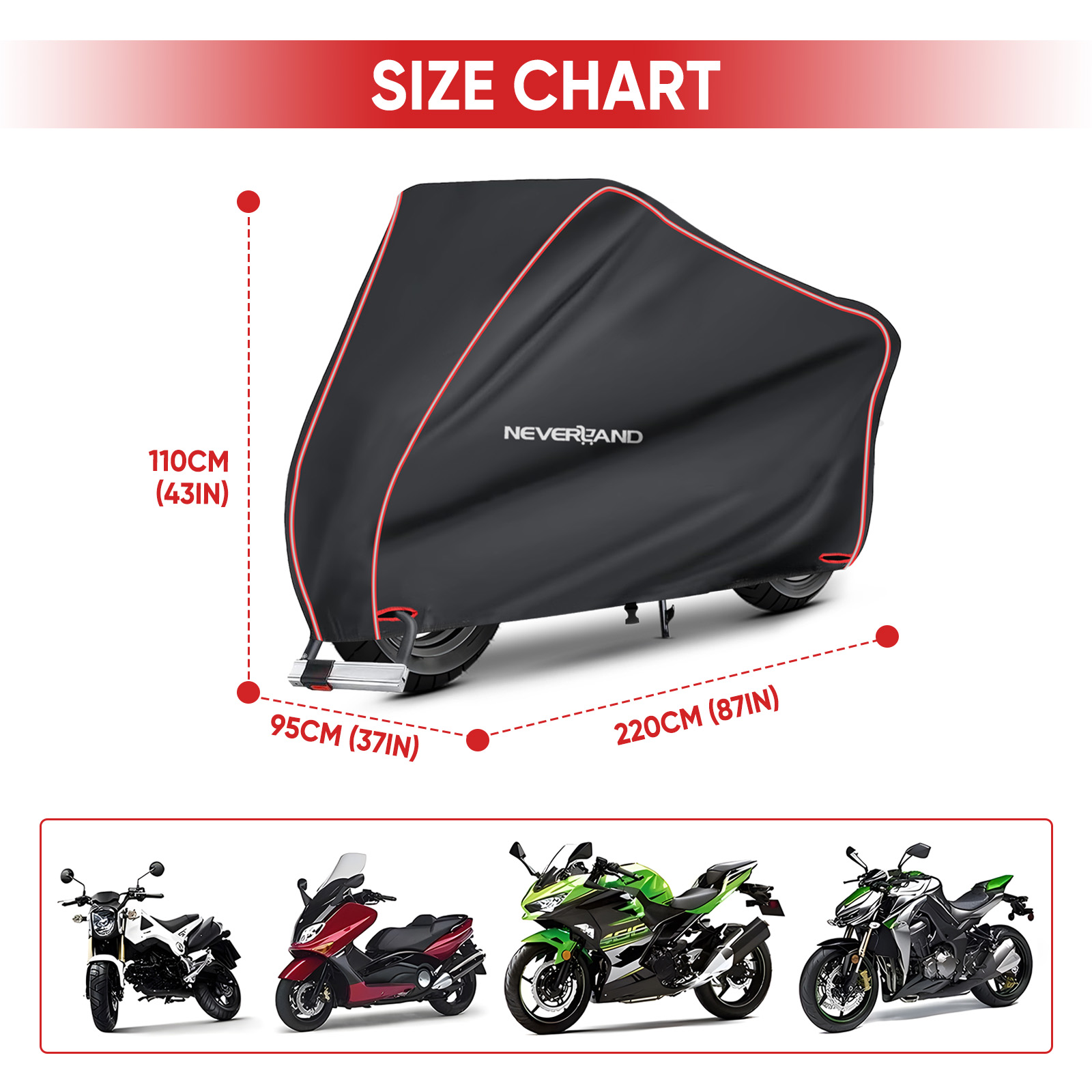 【Usually Applicable】 - For a range of standard sized motorcycles, including for Harley Davidson motorcycle covers, Honda motorcycle covers, Suzuki motorcycle covers, Yamaha motorcycle covers and more.
