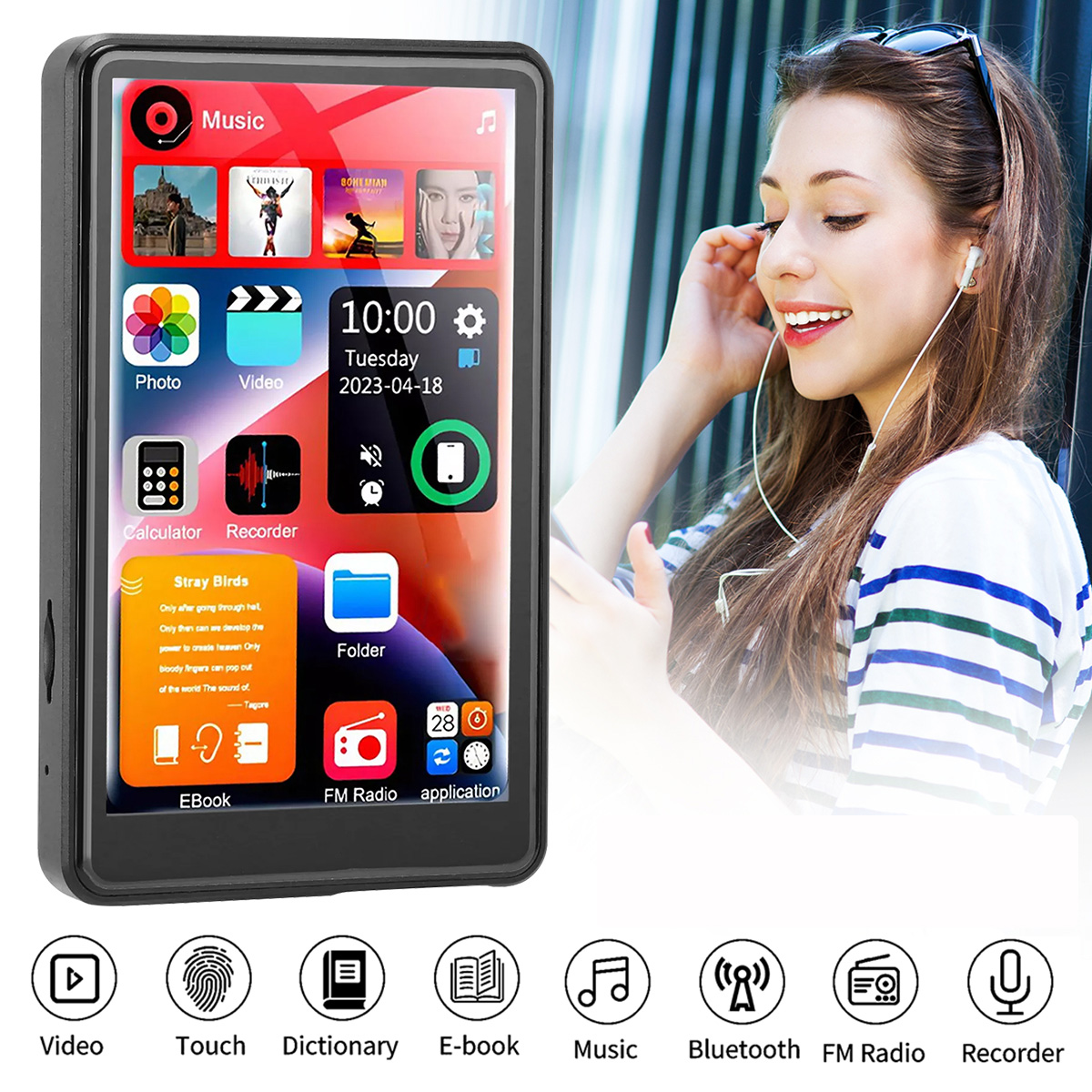 • All-in-One Functionality: Music, videos, voice recording, e-dictionary, TXT e-books, photo viewing, FM radio, and folder management – it does it all!