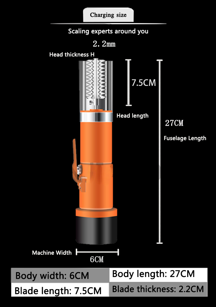 Electric scale scraping artifact commercial scraping fish scale machine stainless steel cutter head to scaleParameters: Name:Scraping Fish Scale Machine+ 2 Battery + BladeProduct size:6*27CMVoltage:220VPower:45-75WBody width:6CMBody length :27CMBlade length:7.5CMBlade thickness : 2.2CMNote: The rechargeable battery is built-in battery, you can use it after the battery is fully charged |