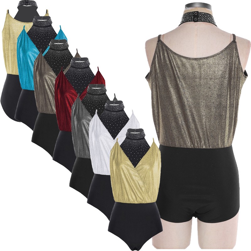 Women Jumpsuit Vest Bodysuit Spaghetti Costume V-Neck Gymnastics Workout DanceUSD 9.99