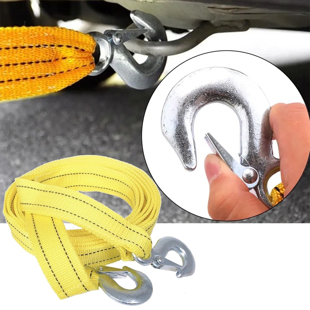 * Caractéristiques de sécurité améliorées : la couleur jaune brillant de cette corde de remorquage améliore la visibilité, pour ce qui la rend beaucoup plus sûre pour use, en particulier pendant la nuit ou dans des conditions de faible luminosité. De plus, les crochets forgés avec verrous de sécurité offrent une sécurité supplémentaire, la corde contre la chute de la voiture et facilitent la fixation et le détachement.