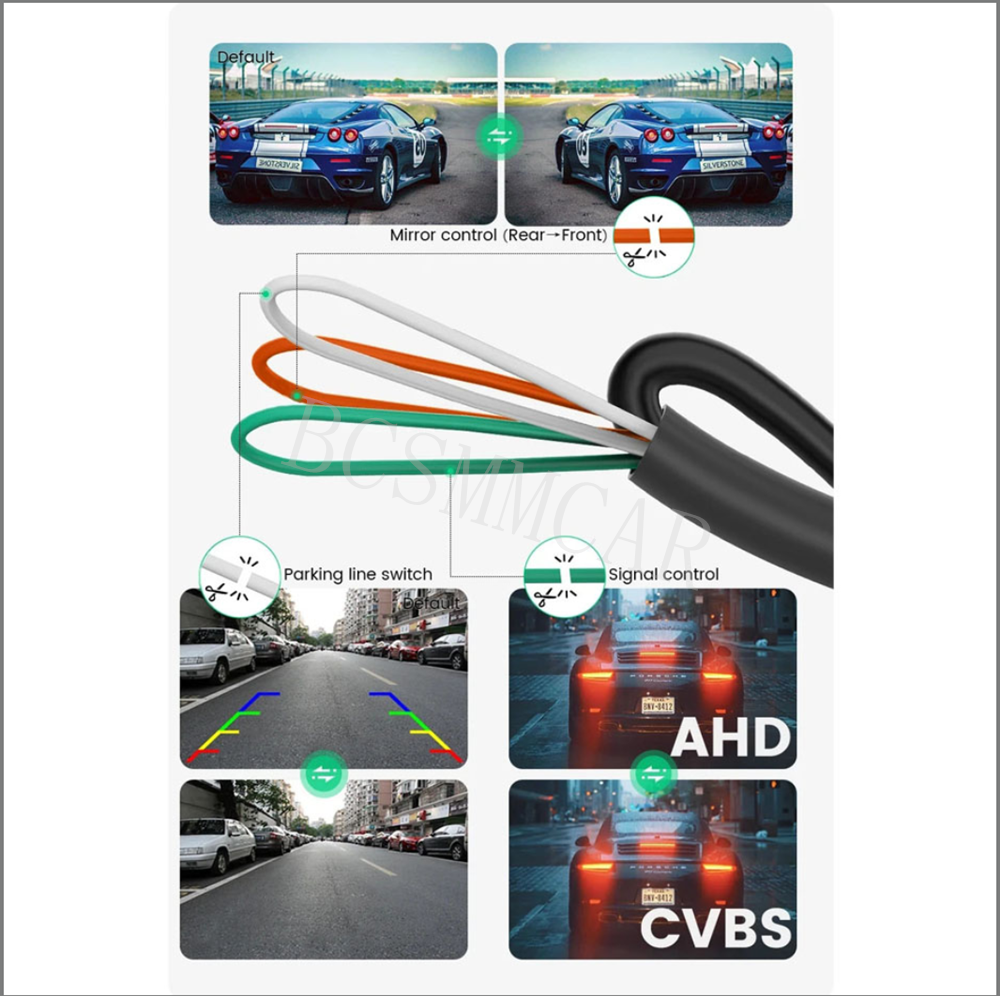 • Camera with parking line, you can cut the White cable, then without parking line.