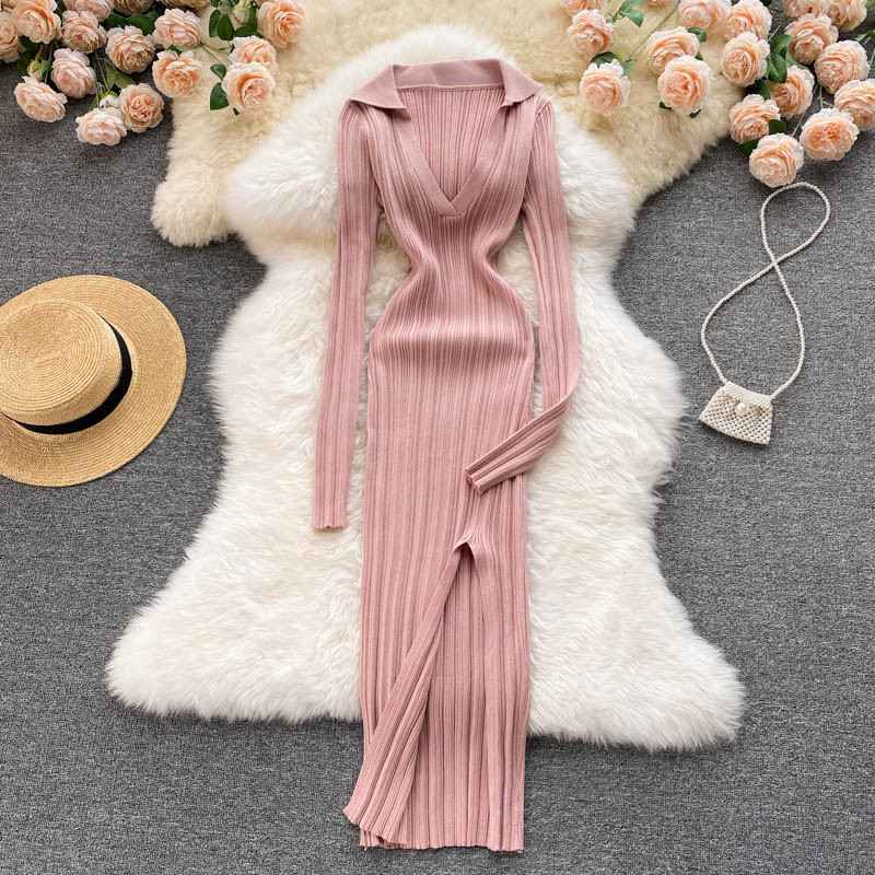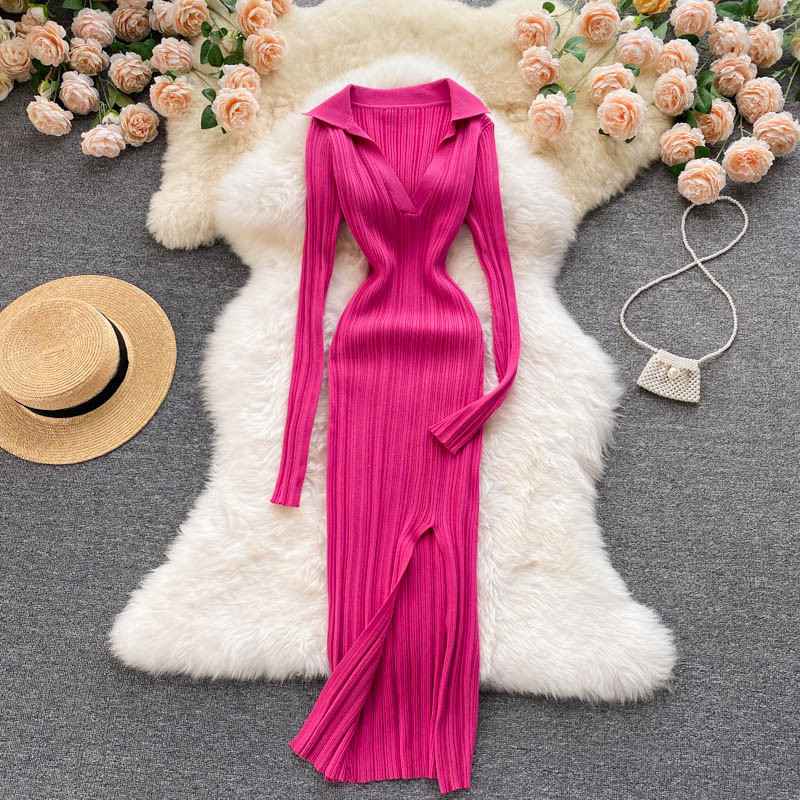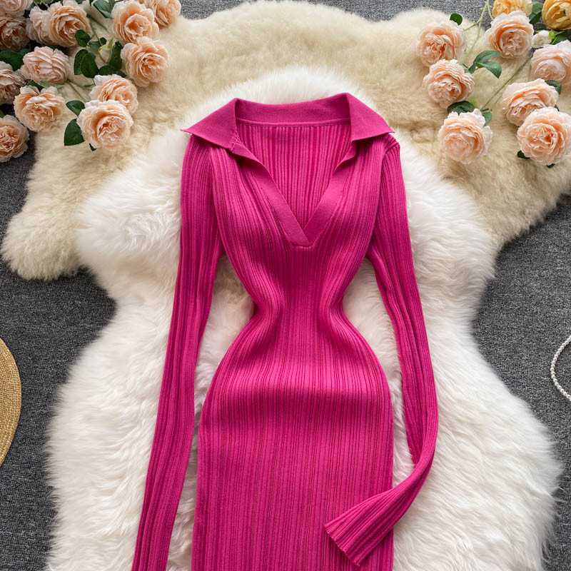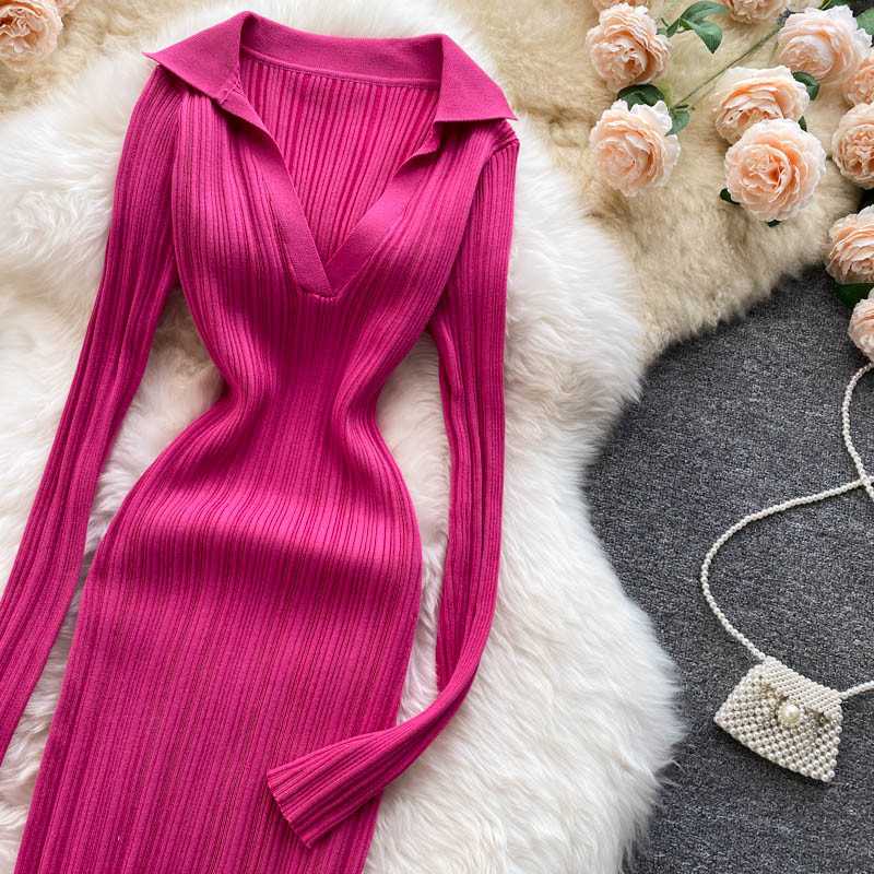 Dress Bodycon Party Autumn Casual Stretchy Collar Long Women Turn-down Collar