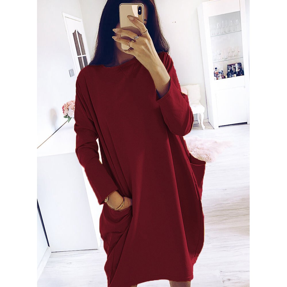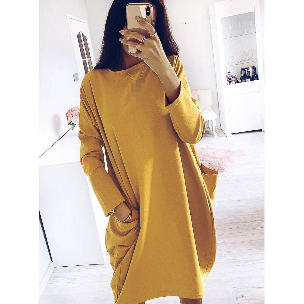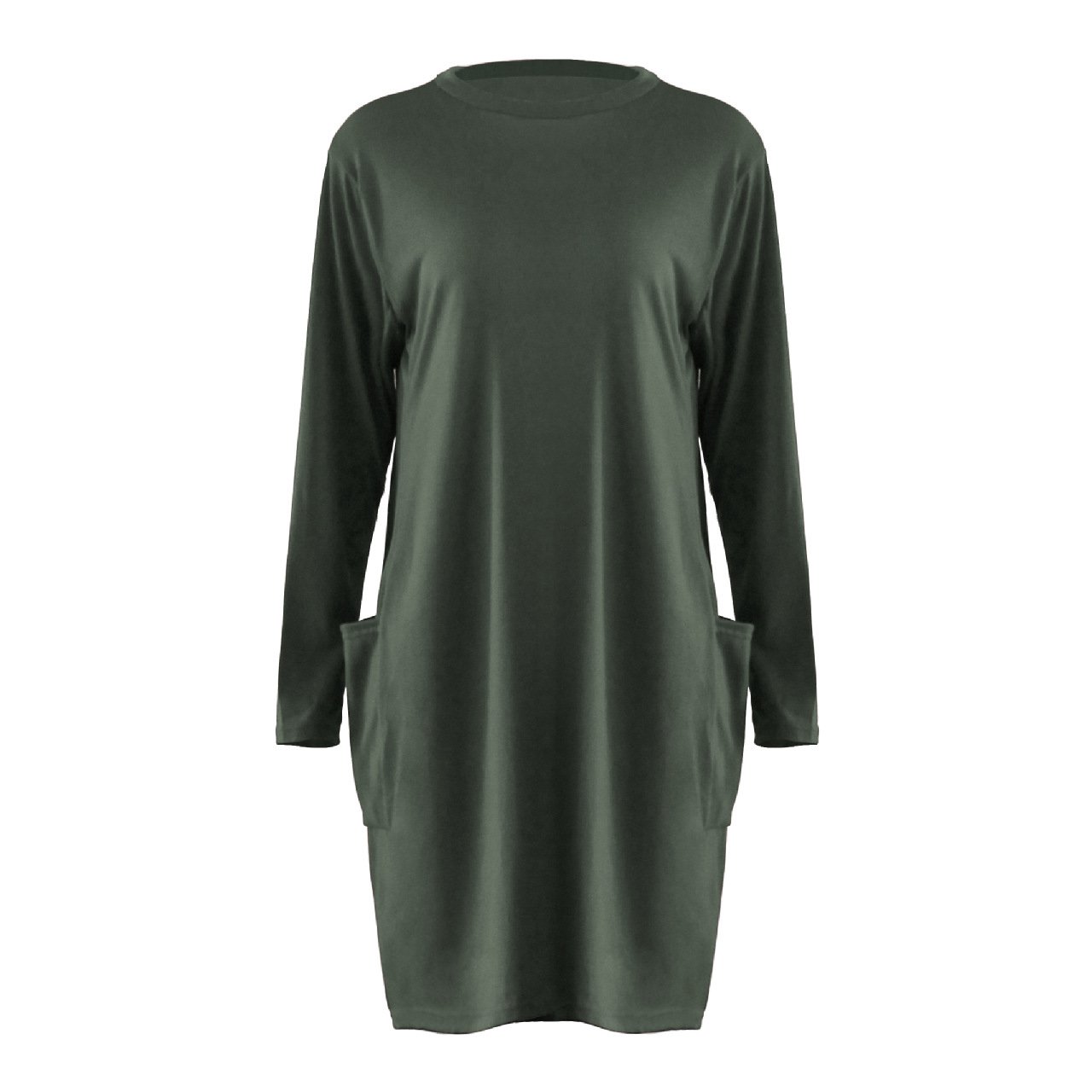 Blouse Dress Long Sleeve Womens Loose Pullover Ladies Casual Tunic Tops Pockets