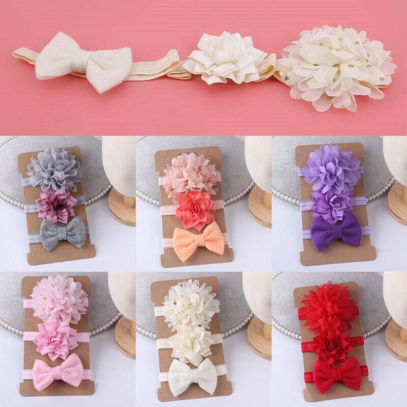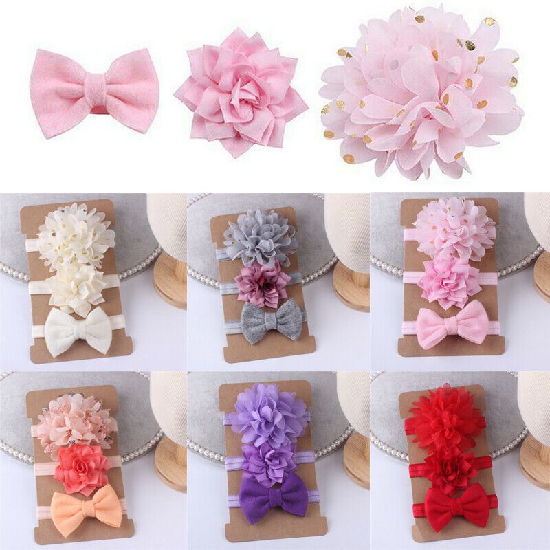 Hair Band 3Pcs/Set Headband Elastic Kids Elastic Bow Headdress Newborn Baby