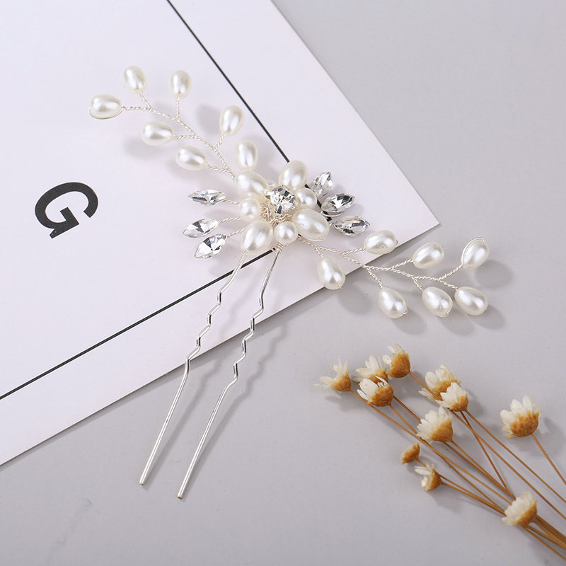 Cross Border Hairpin Hairware Crystal Bridal Pin Wedding Pearl Hairpin