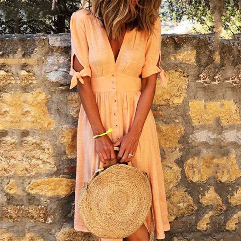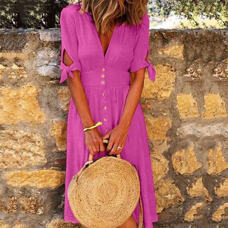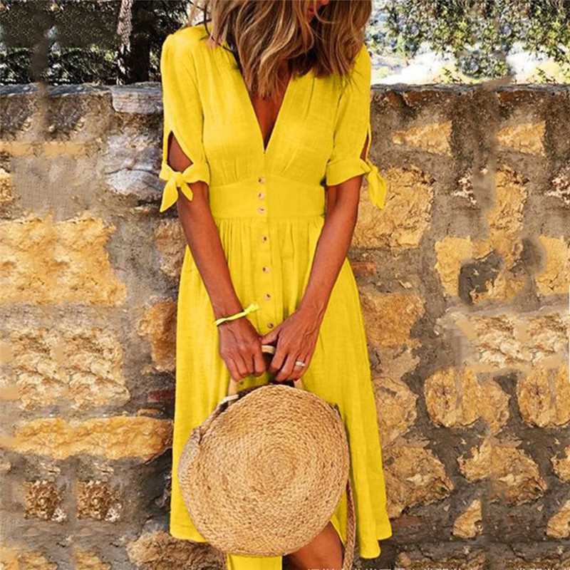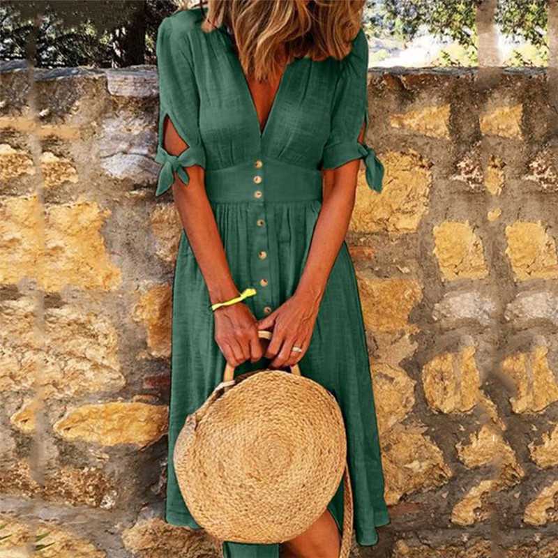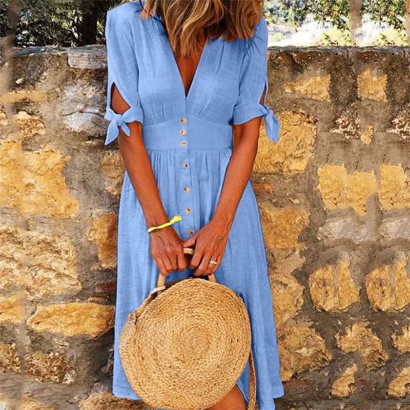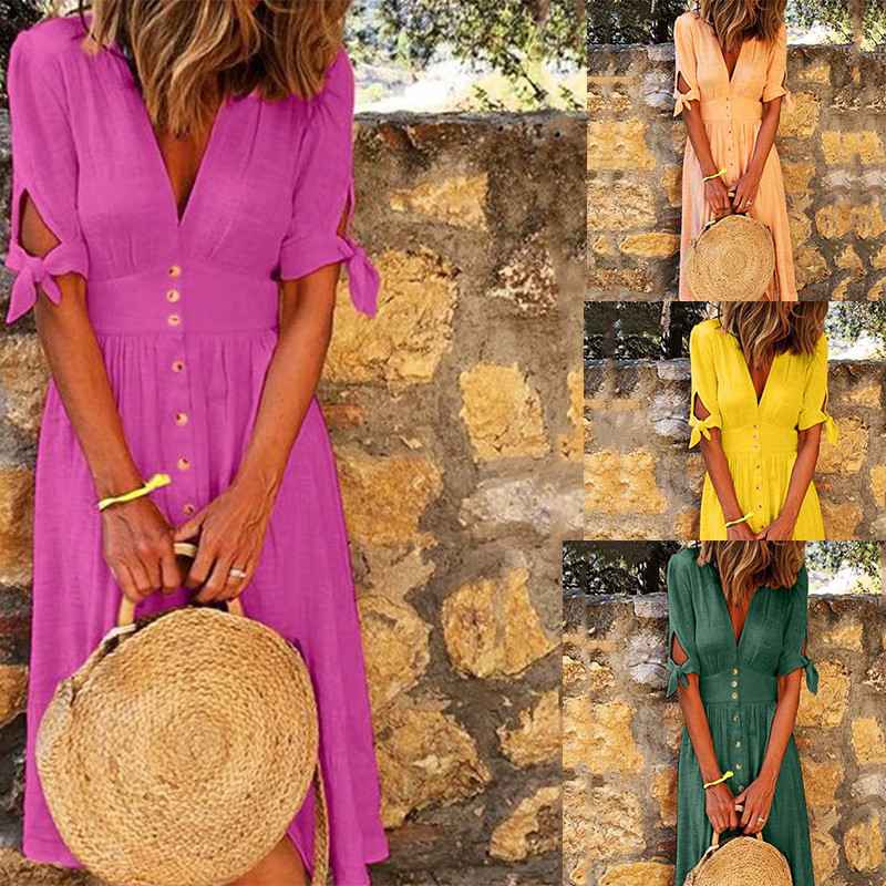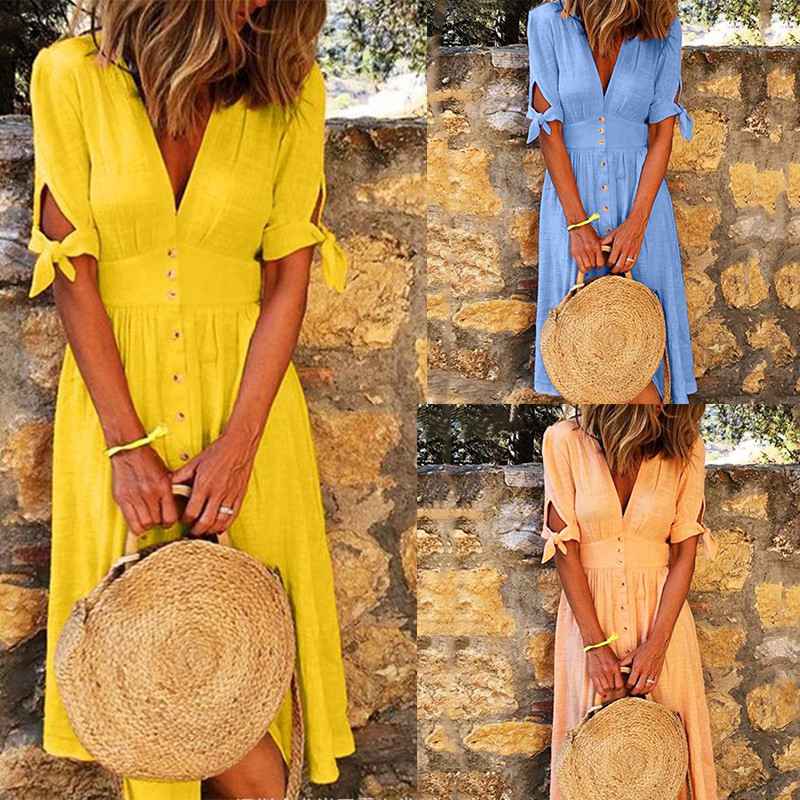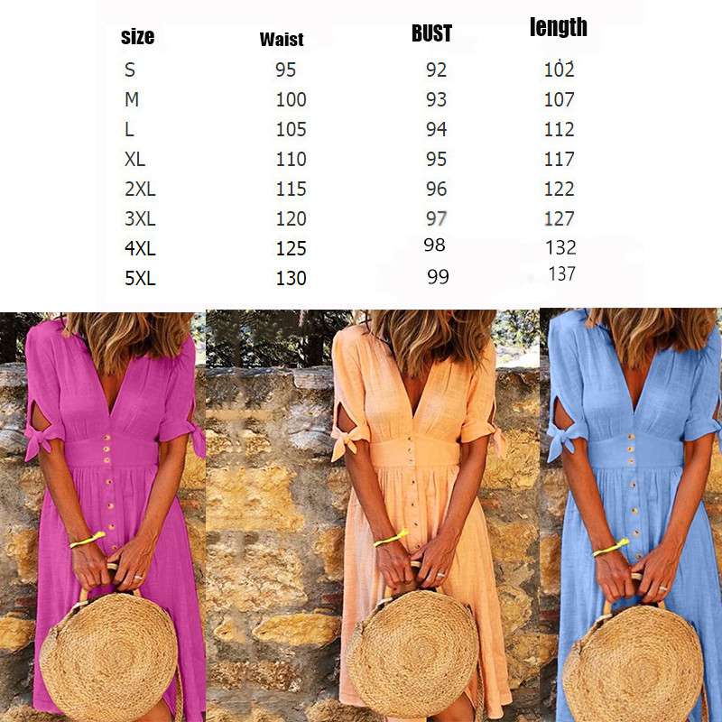 Plus Size Midi Dress Ladies Womens V-Neck Holiday Dresses Summer Casual Sundress