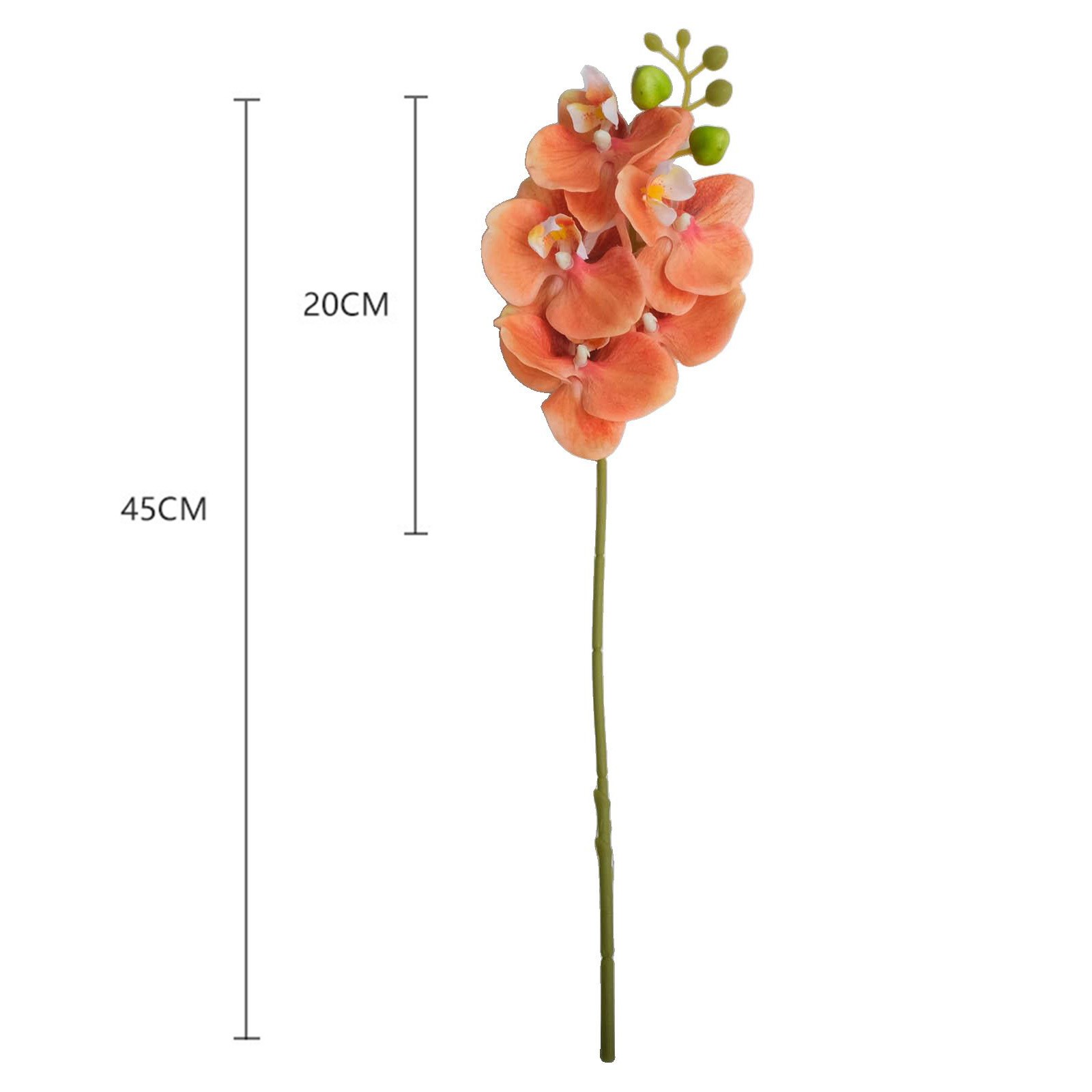 *Package and size: The package includes 1 artificial orchid stem, measuring 17.7 inches in height, with a flowering part of approximately 7.9 inches. It features 5 flower heads, each with a diameter of about 3.1 inches. The bud size may vary.