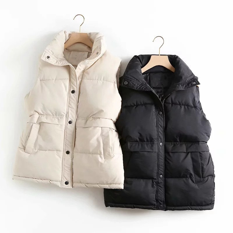 Vest Stand Collar Jacket Waistcoat Women Autumn Winter Windproof Cotton Padded