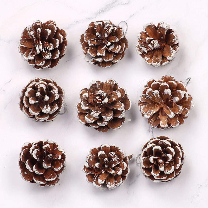 Christmas Tree Pendant White Edge White Edge Decoration Natural Real Pine Cones