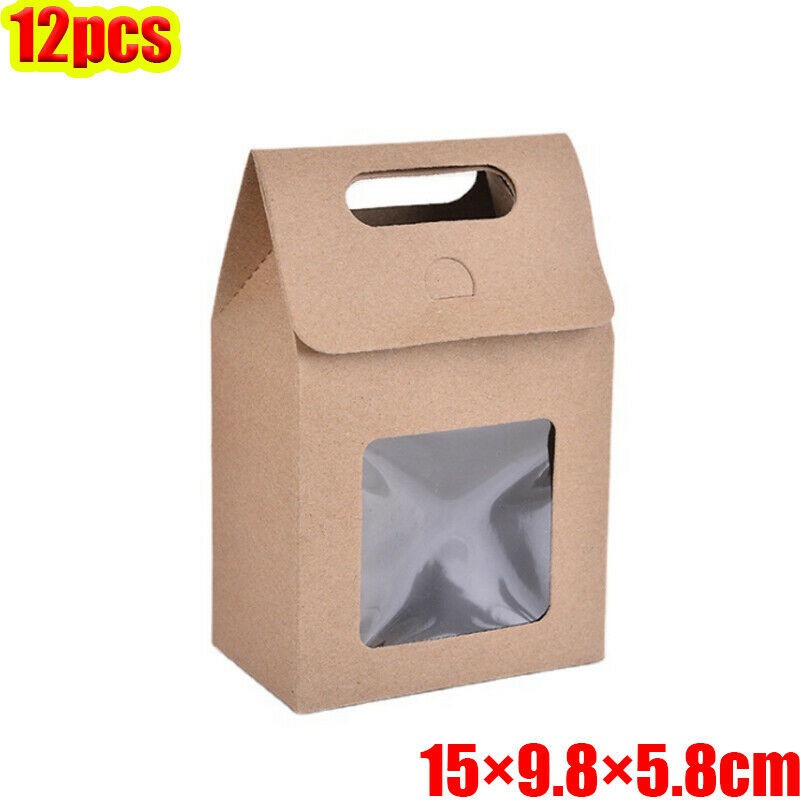 Our Brown Kraft gift Bag boxes are the perfect way to present your gift for that special occasion. Use it for Candy, Cupcakes, Muffins, Chocolates or Sweets. This Set of 12 Same Size Boxes are Brown Kraft Color, beautifully finished with a Transparent Clear Window. Made from cardboard.