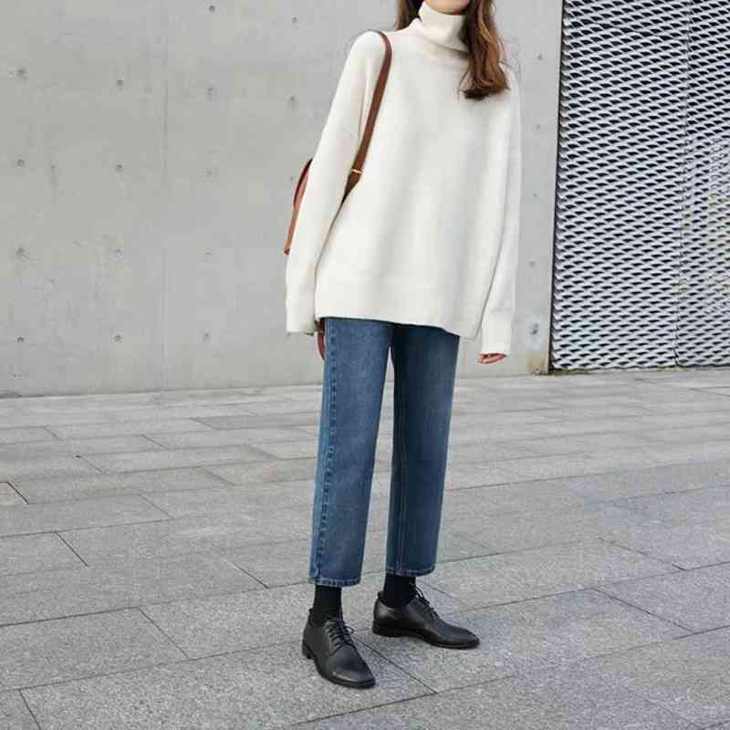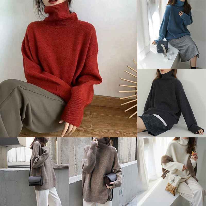 New Korean Style Winter Loose Warm Sweater Female Turtle Neck Knitted Pullover