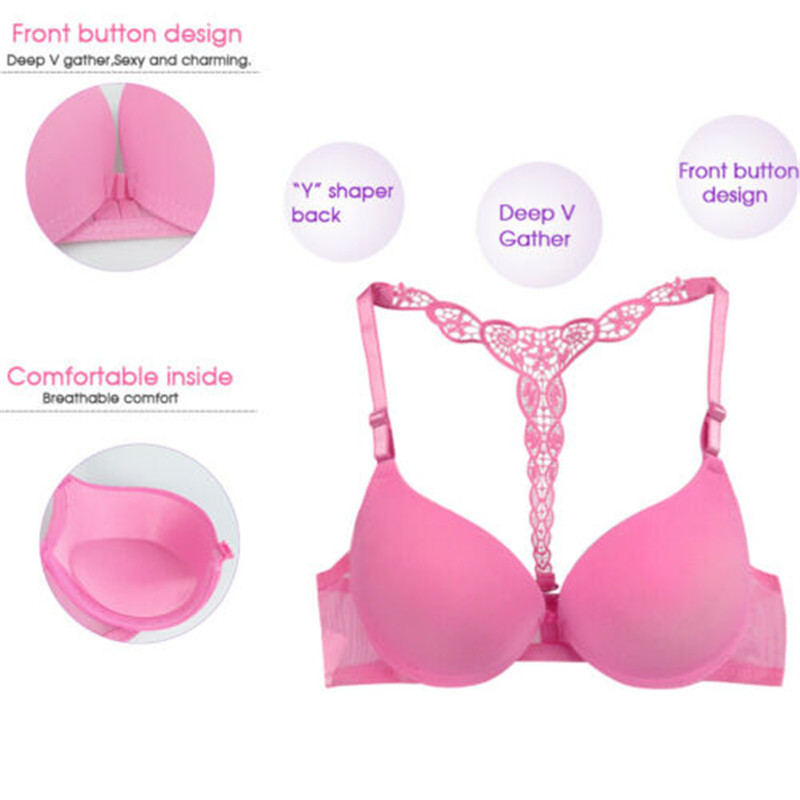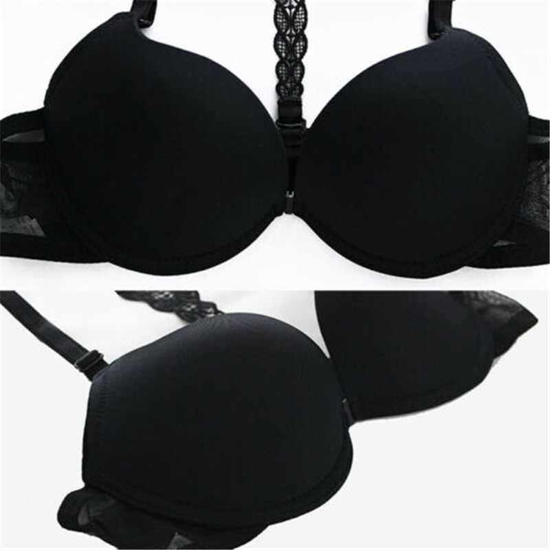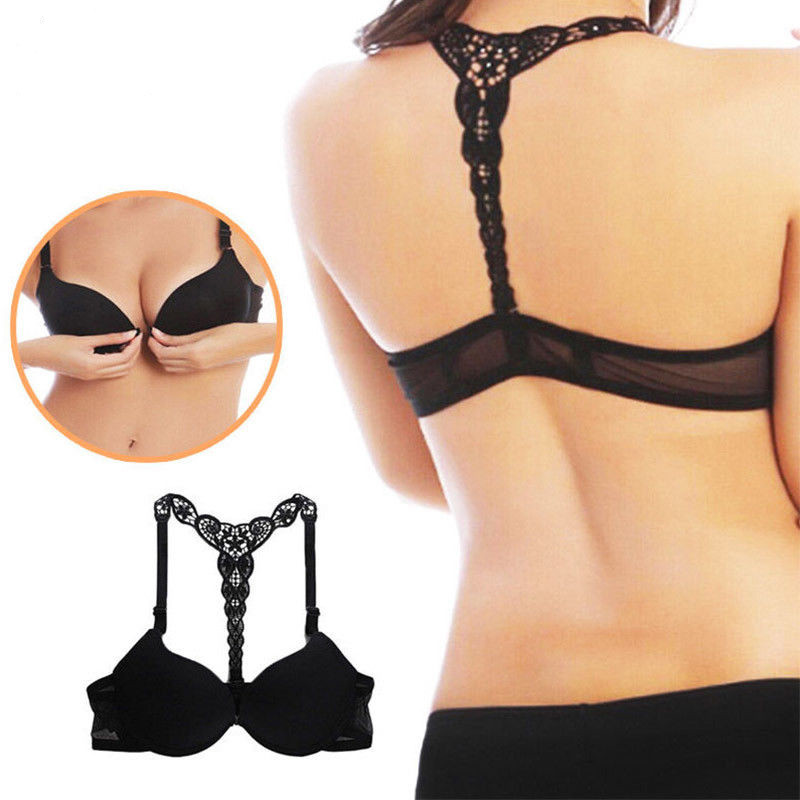Womens Front Sexy Closure Lace Bra Push Up Seamless Racerback Underwear Bralette
