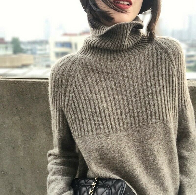Women Cashmere Sweater Turtleneck Knitting Pullovers Solid Warm Female Sweater