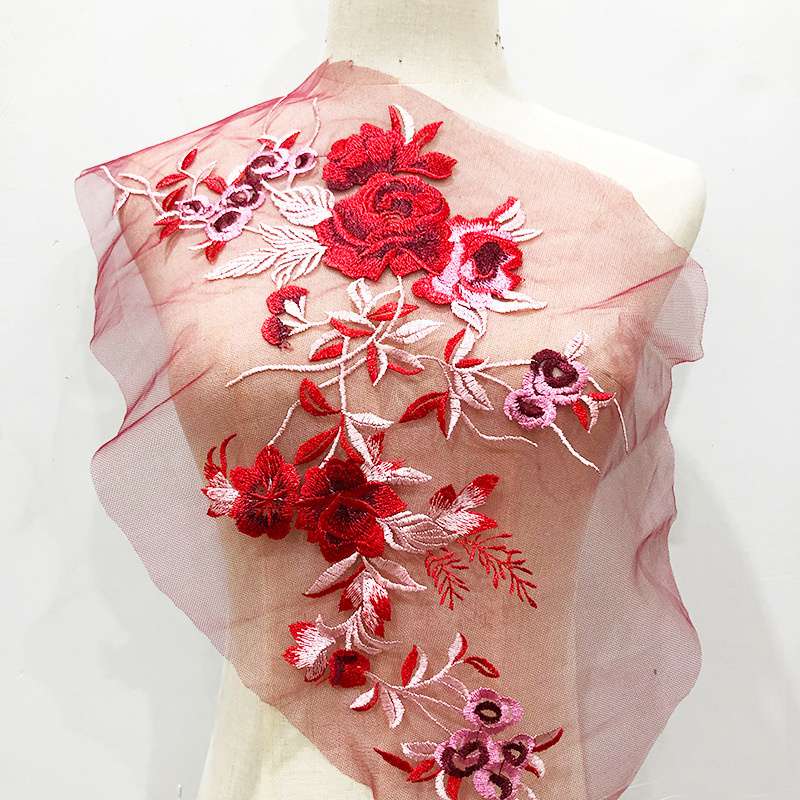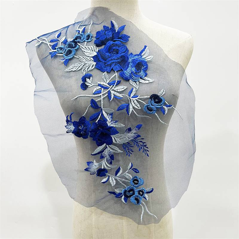 1Pc Embroidery Flower Boutonniere 49*21cm Clothing Decoration Patches Wedding