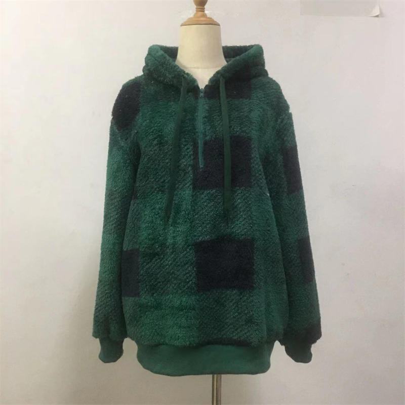 Fashion Plush Coat Long Sleeve Women's Sweater Hooded Plaid Plush Hoodie