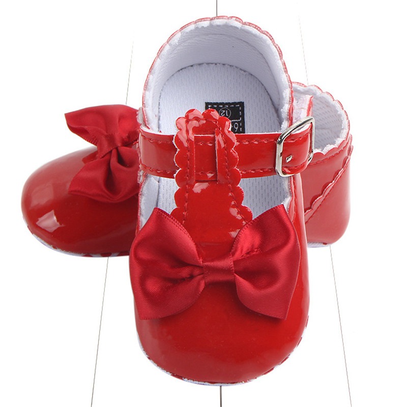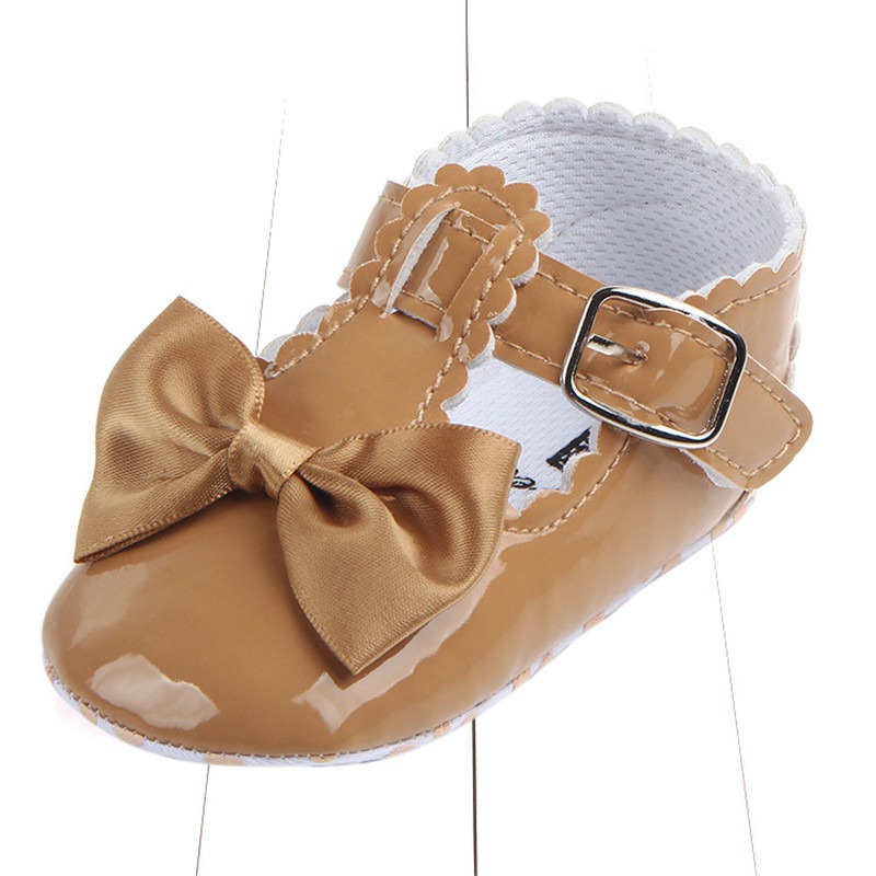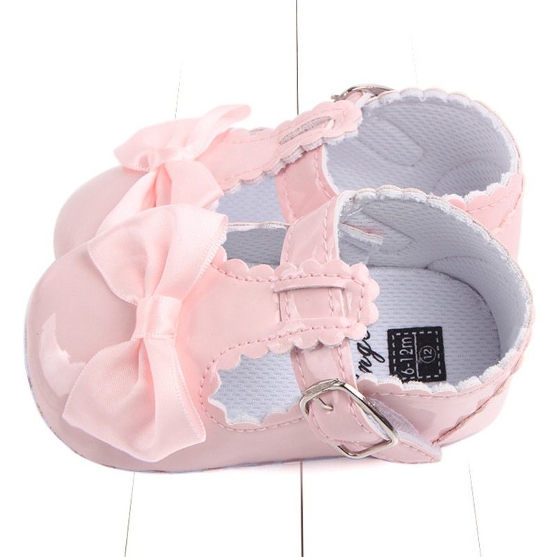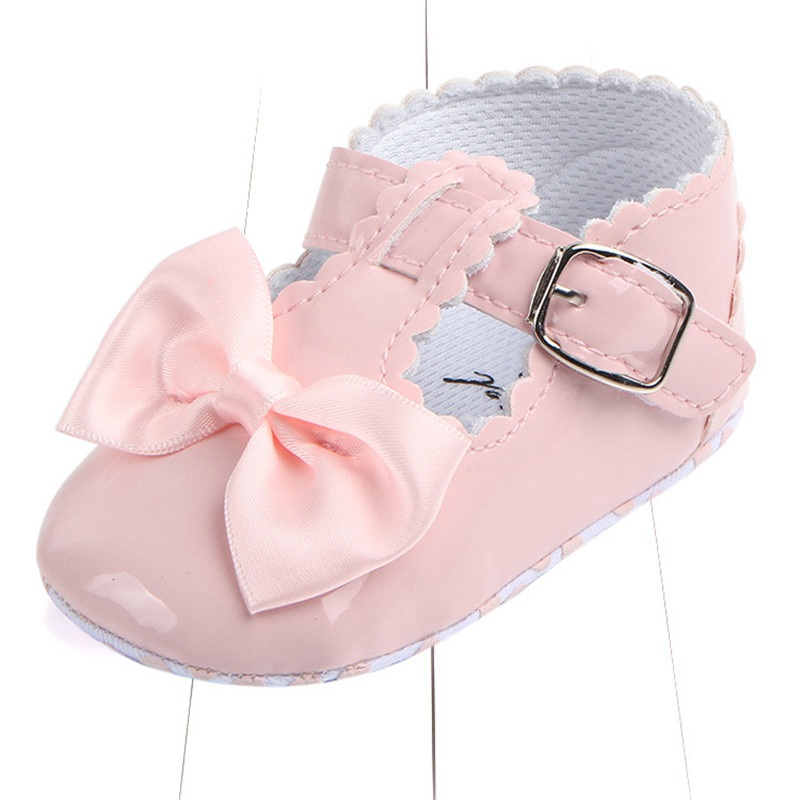 Newborn Baby Girls Bow Crib Pram Shoes PU Soft Sole Princess Anti-slip Prewalker