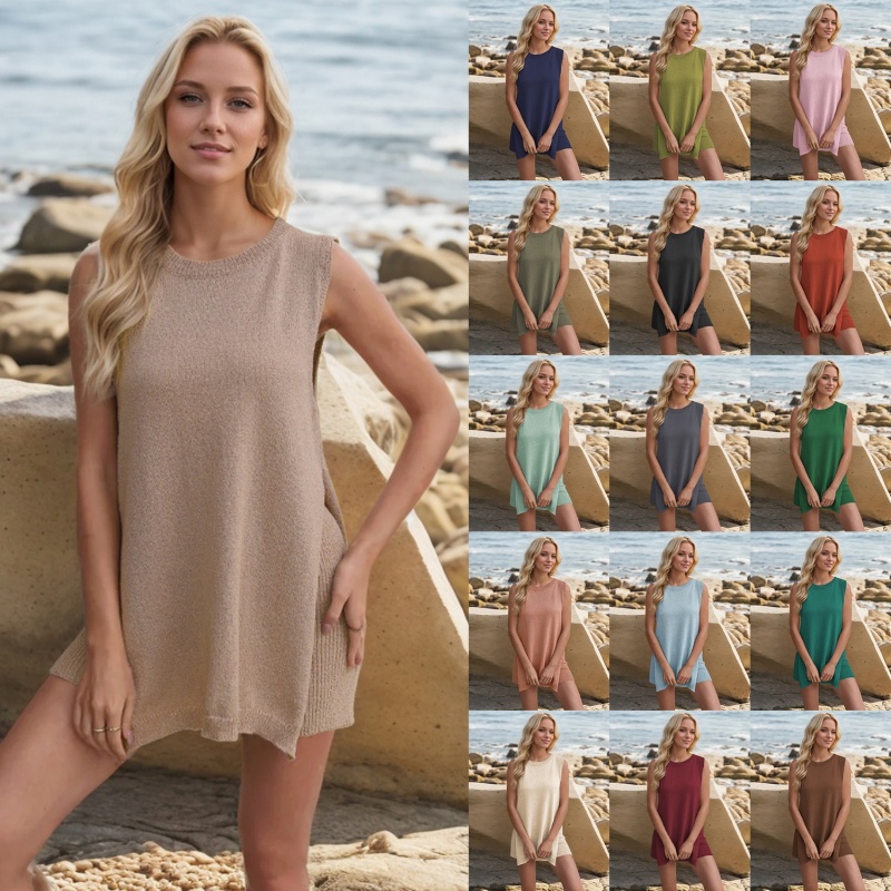 Women Clothing Fashion Loose-Fitting Casual round-Neck Vest Shorts Knitting Suit
