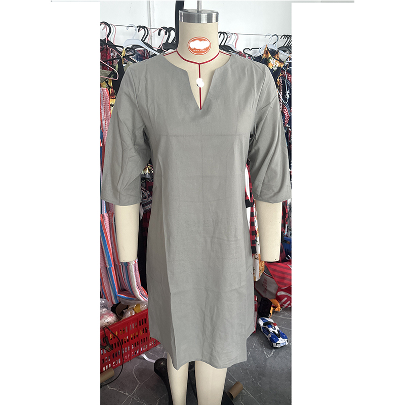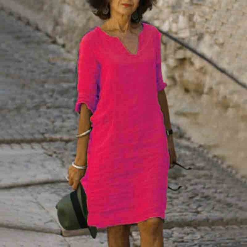 HOT SALE Midi Dress Baggy Sundress Women's Short Sleeve Ladies Solid V Neck
