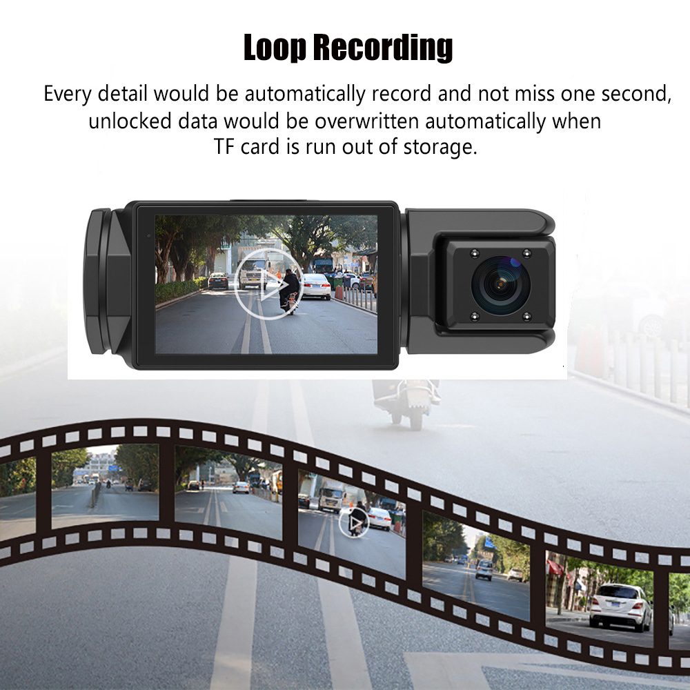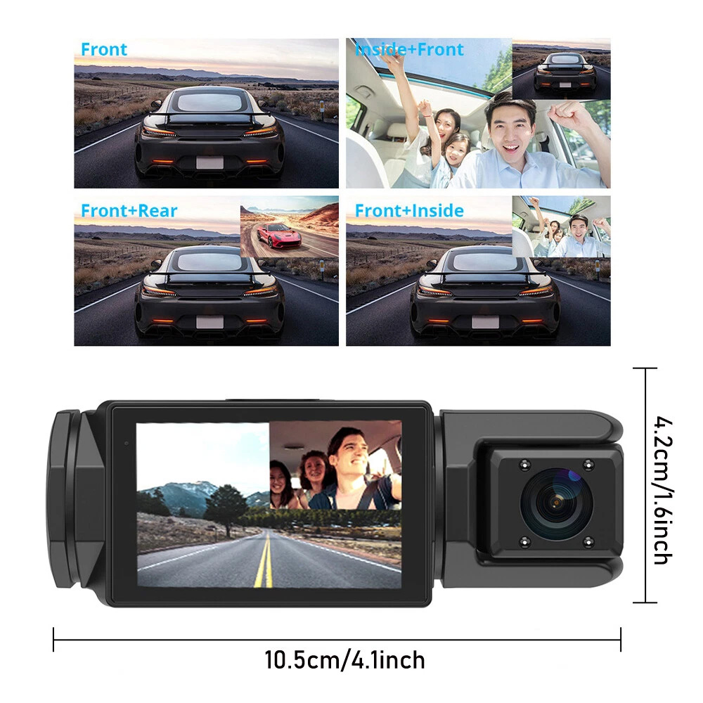 BREITE ANZEIGE & LOOP-AUFNAHMEN: Mit einem 150 ° Ultraweitwinkel-Dash-Kamera vorne, ein 110er ° Innenkamera und ein 110 ° Dank der Rückfahrkamera deckt diese Dashcam 6 Straßenbahnen ab und beseitigt wirksam tote Winkel. Die Loop-Aufnahmefunktion gewährleistet eine kontinuierliche Aufnahme, indem sie das älteste Video überschreibt, wenn die Speichergrenze erreicht ist.