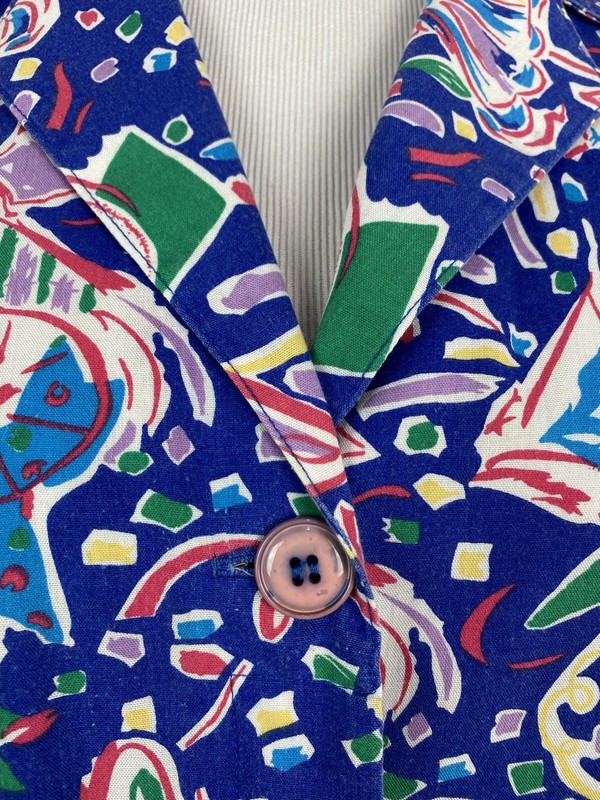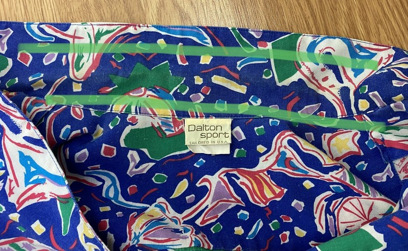 VINTAGE CONDITION: AS IS - light discoloration at back collar, fading to top button. Overall, moderate general wear, fading, with light pilling throughout. See photos for details.