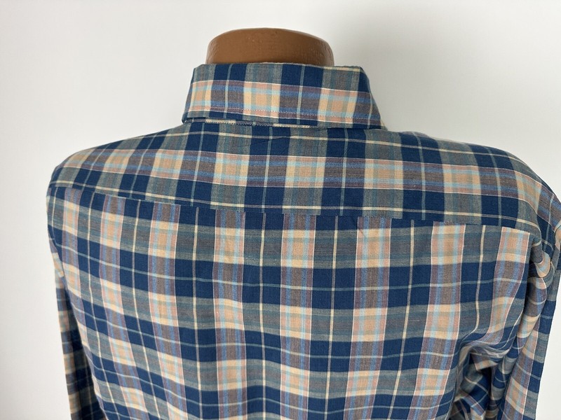 CONDITION: Very light wear. One of the cuff buttons is broken. No holes or stains. See pics for details. Ultra lightweight cotton poly blend. See measurements to ensure a proper fit.
