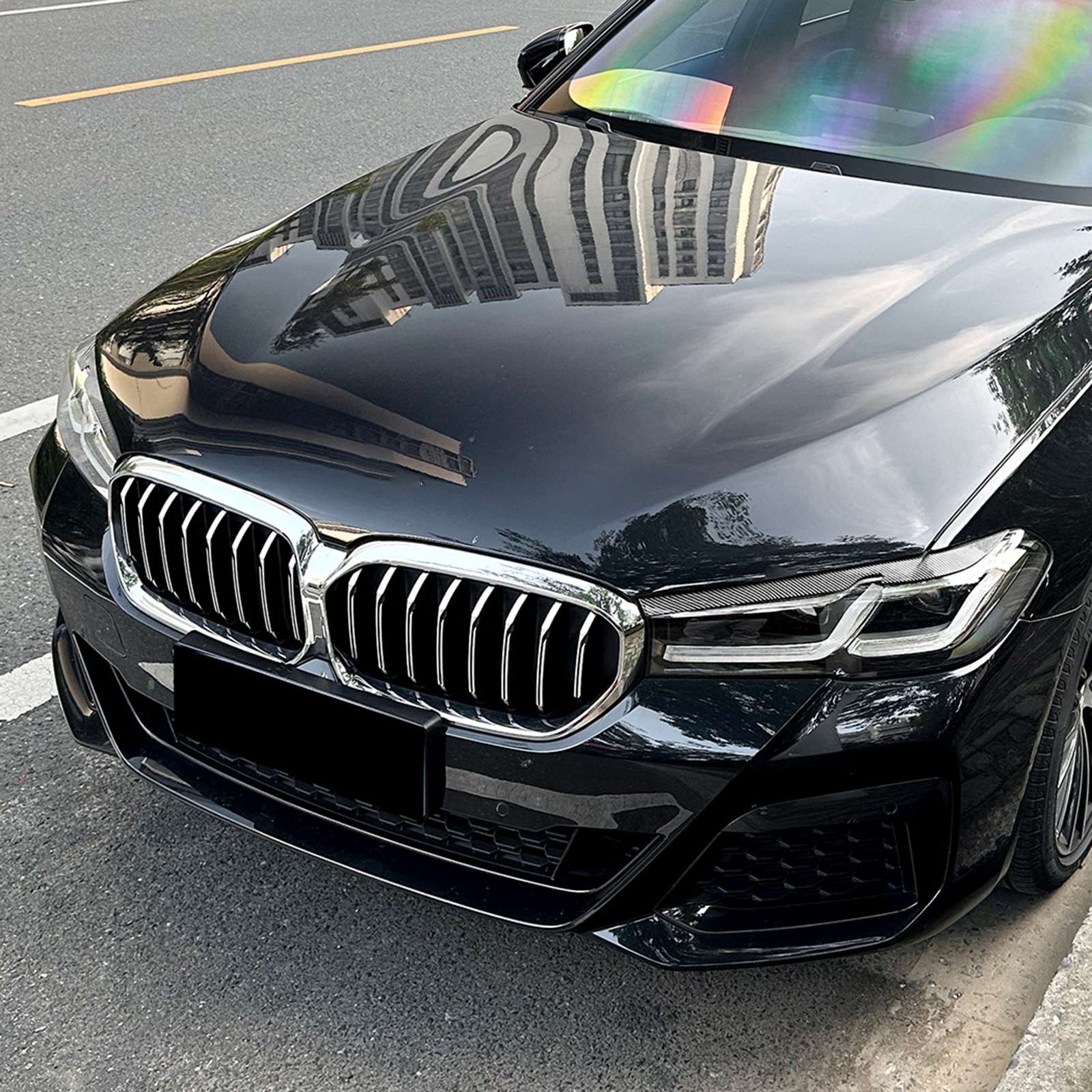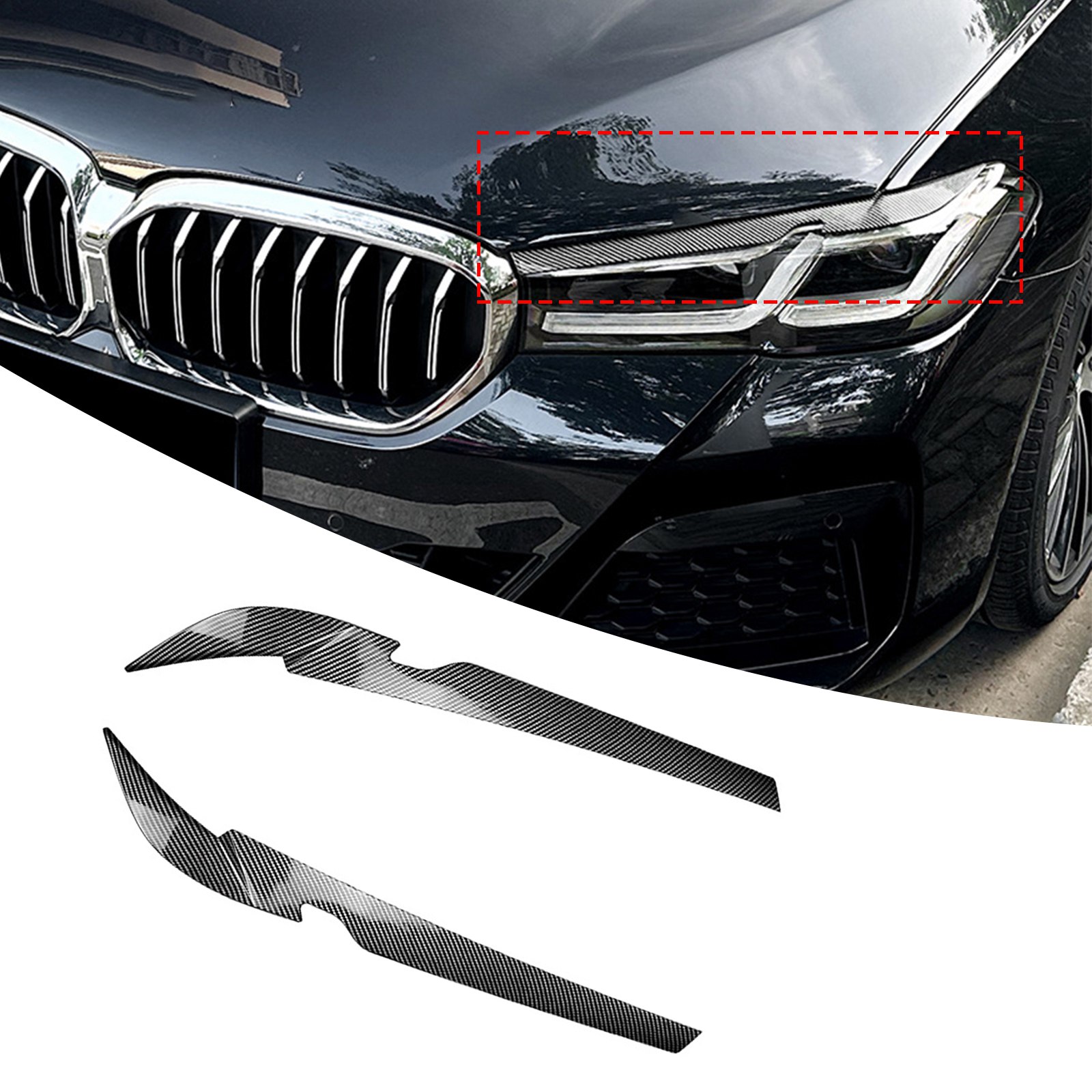 Carbon Look Front Headlight Eyebrow Cover Trim For BMW 5 Series G30 G31 2021-23