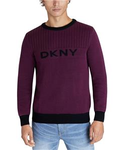 DKNY Men's Wine Regular Fit Crewneck Long Sleeve Logo Sweater Size XL