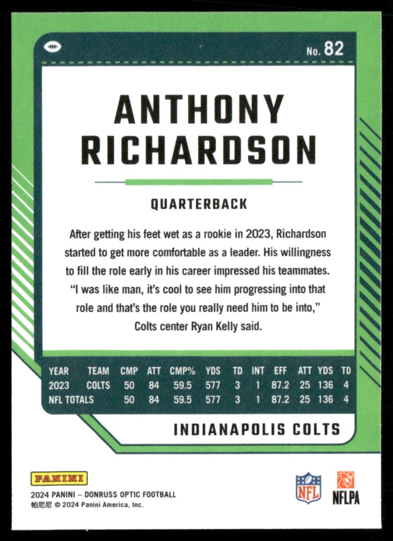 | 2024 DONRUSS OPTIC ANTHONY RICHARDSON INDIANAPOLIS COLTS #82 |