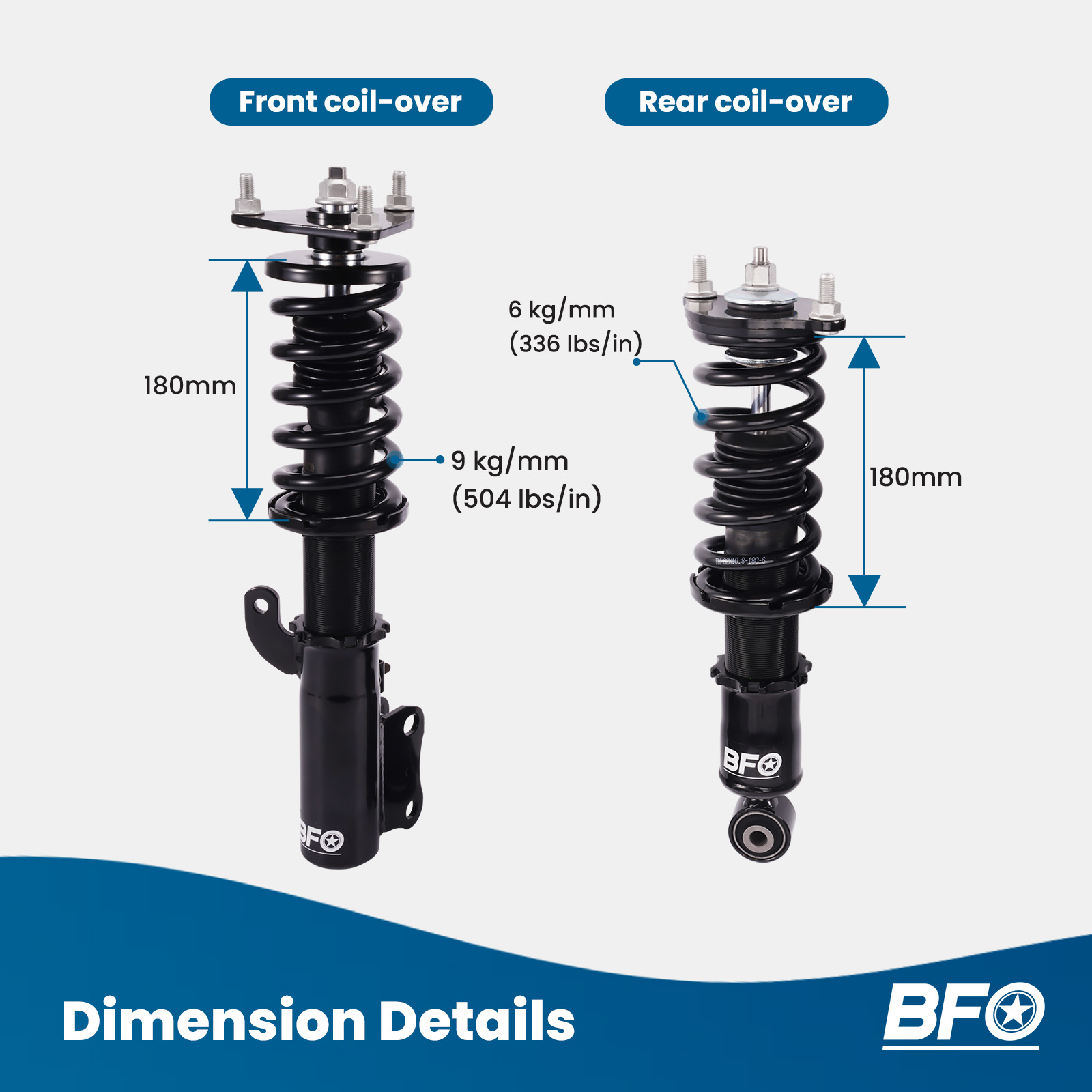 - Spring length Front: 180 mm