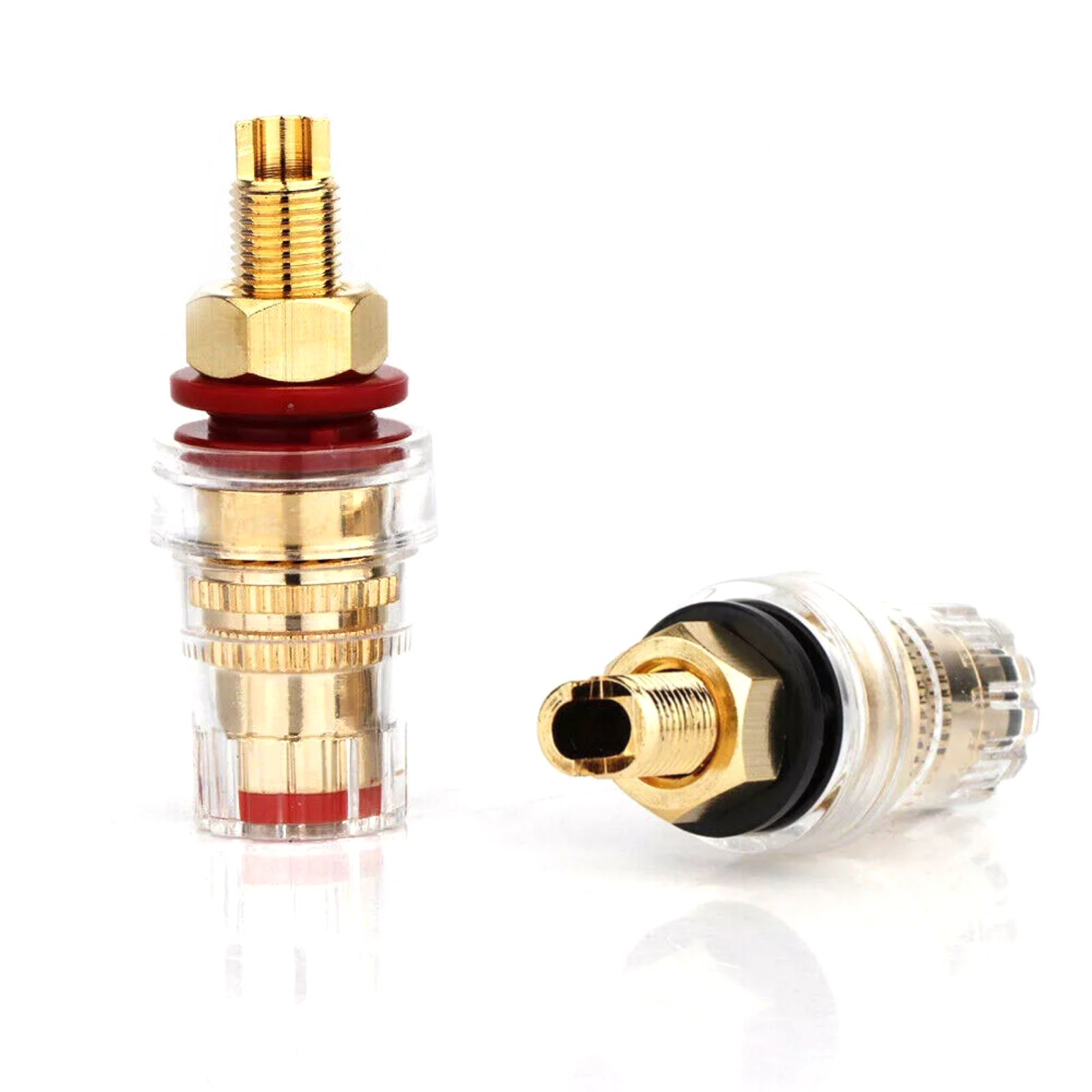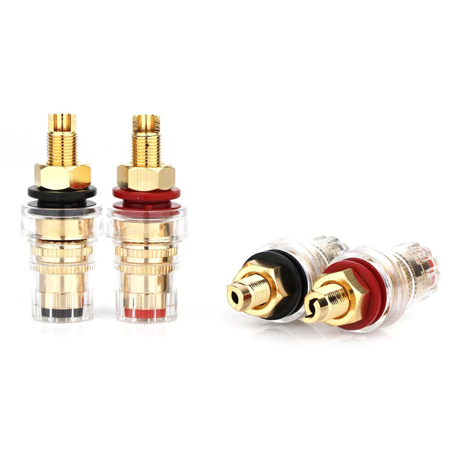 Aesthetic Decorative Effect: The transparent crystal design of the binding posts not only gives the product a unique visual appeal but also enhances the overall decorative beauty of the home or stage. Its crystal-clear appearance complements the gold plating, exuding a sense of premium elegance and becoming a striking focal point in any space.