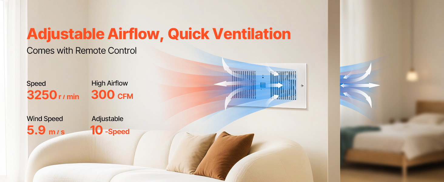 Is your living room or bedroom affected by humidity or bad smell? Improve air quality with an indoor ventilation fan. It features bi-directional adjustable airflow, a multifunctional display panel, and a remote control, allowing easy adjustments via the remote or smart panel.